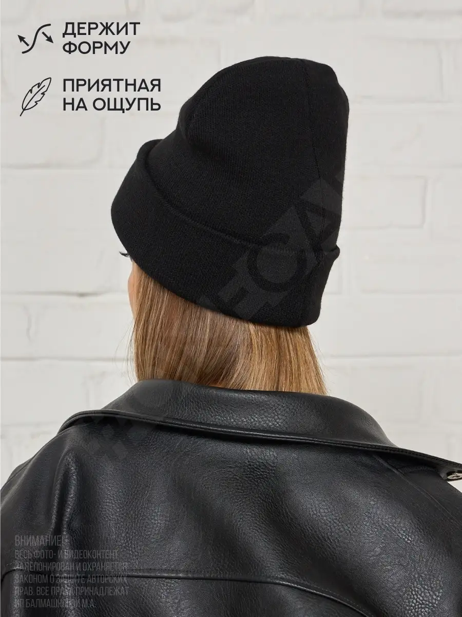 Шапка женская зимняя вязаная черная/демисезонная/лопата