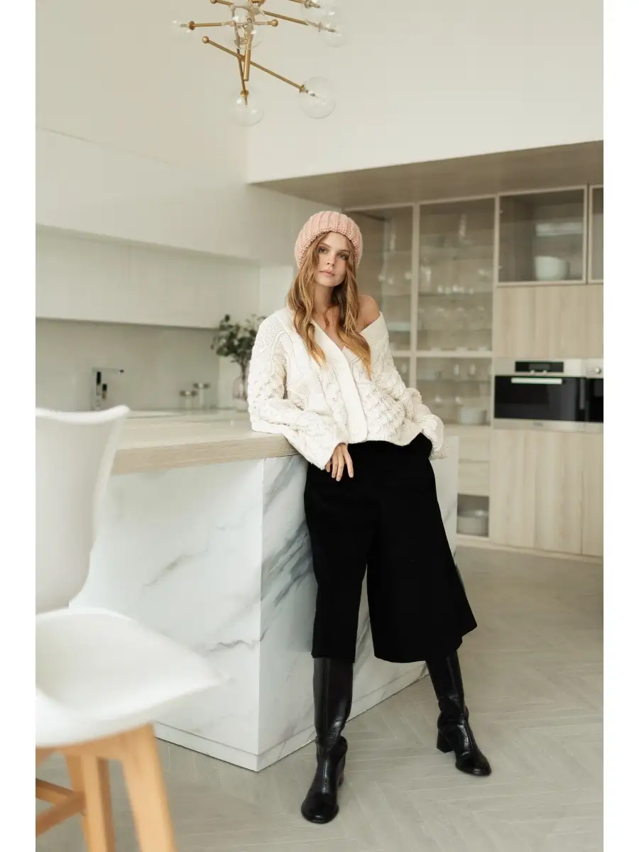 Описание: Оверсайз. Двойная объемная женская шерстяная шапка крупной вязки. Теплая и мягкая, с нитью, состоящей из шерсти альпаки и овцы. Она такая нежная, что Вам не захочется выпускать ее из рук. Супер модная, стильная и прекрасно сочетается с любой верхней одеждой. Шапка двойная!!! Нижний слой - не из флиса! Он сделан из смесовой пряжи шерсть 50%+ 50%акрил. За счет этого шапка не колется, лоб не чешется ( но у особо чувствительных к натуральным волокнам этот эффект может остаться) , голова не потеет и к ней не прилипают волосы. Верхний - смесь шерсти Овцы и Альпаки. Именно такой состав дает необыкновенное тепло, мягкость и легкую пушистость. Мы не стали добавлять в нашу модель ангору, которую многие считают наиболее теплой, ведь она ни в чем не превосходит альпаку... но пух, который с нее летит в глаза и рот, останавливает нас от ее использования) Мы долго шли к этой модели, продумывая каждую мелочь. При машинной вязке сложно сделать такую объемную шапку из натуральной шерсти... поэтому , как правило, крупная вязка возможна в ручном исполнении. Из акриловой нити - пожалуйста, из натуральных материалов- целая история. Но мы воплотили мечту в реальность. Почему мы выбрали именно объемный колпак? Объясняем))) Мы создавали шапку зимнюю именно для девушек и женщин, которые уверены, что шапки им не идут.... Такая же проблема была и у нас. НО! Это не так! Просто не было той шапули, которая "сидела" бы свободно и в которой бы производитель не пожалел качественной и хорошей пряжи для Вашей красоты. Уникальность данной модели Оверсайз в том, что она идет практически всем, наш головной убор предназначен для любого типа лица. Допустим, для овального необходимо, чтобы шапка зрительно "округлила" лицо и ни в коем случае не вытягивала его еще больше. Поэтому девушки, как правило, берут шапки с отворотом, которые плотно облегают голову на макушке. Это не дает возможности делать гульки, хвосты и другие объемные прически. Все прилипает, торчит или оседает под такой женской шапкой. Плюс, отворот может дать слишком большой объем, особенно для небольшого лица подростка или миниатюрной женщины. А ведь так хочется быть в тренде и носить модные бини.....Что делать? Для этого наша крупная вязка дает оптимальный необходимый объем вокруг лица и колпак уже не несет такой нагрузки. У Вас круглое лицо, и Вам просто противопоказано его увеличивать дополнительным отворотом. Отлично! У нас его нет! Шапка из натуральной шерсти прекрасно равномерно растянется, вязка станет не такой выпуклой, но в тоже время останется объемной. Она не обтянет голову , как чулок, что достаточно часто встречается в шапках мелкой вязки и не сделает Вашу голову шариком. Задняя часть визуально "уравновесит" переднюю часть модели и удлинит форму головы. У Вас большой размер головы? Так и наша зимняя красавица не маленькая. Копна волос и вечная проблема, куда их деть в маленьких шапках? У нас есть супер предложение - дополнительный объем колпака. Вы страдаете от мигрени, когда что-либо давит на лоб, стягивает голову? Тогда наша шапка - лучшее лекарство от этого. Именно благодаря тому, что шапка зимняя универсальной формы, ее можно по разному носить. Вытянув шапку, придав ей форму Кусто или спорт-шик, Вы можете наряжаться в стиле casual-sport. Надеваем пуховик или парку, дутики или ботинки на платформе - и вперед по городу на р