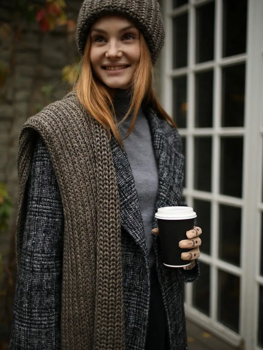 Описание: Оверсайз. Двойная объемная женская шерстяная шапка крупной вязки. Теплая и мягкая, с нитью, состоящей из шерсти альпаки и овцы. Она такая нежная, что Вам не захочется выпускать ее из рук. Супер модная, стильная и прекрасно сочетается с любой верхней одеждой. Шапка двойная!!! Нижний слой - не из флиса! Он сделан из смесовой пряжи шерсть 50%+ 50%акрил. За счет этого шапка не колется, лоб не чешется ( но у особо чувствительных к натуральным волокнам этот эффект может остаться) , голова не потеет и к ней не прилипают волосы. Верхний - смесь шерсти Овцы и Альпаки. Именно такой состав дает необыкновенное тепло, мягкость и легкую пушистость. Мы не стали добавлять в нашу модель ангору, которую многие считают наиболее теплой, ведь она ни в чем не превосходит альпаку... но пух, который с нее летит в глаза и рот, останавливает нас от ее использования) Мы долго шли к этой модели, продумывая каждую мелочь. При машинной вязке сложно сделать такую объемную шапку из натуральной шерсти... поэтому , как правило, крупная вязка возможна в ручном исполнении. Из акриловой нити - пожалуйста, из натуральных материалов- целая история. Но мы воплотили мечту в реальность. Почему мы выбрали именно объемный колпак? Объясняем))) Мы создавали шапку зимнюю именно для девушек и женщин, которые уверены, что шапки им не идут.... Такая же проблема была и у нас. НО! Это не так! Просто не было той шапули, которая "сидела" бы свободно и в которой бы производитель не пожалел качественной и хорошей пряжи для Вашей красоты. Уникальность данной модели Оверсайз в том, что она идет практически всем, наш головной убор предназначен для любого типа лица. Допустим, для овального необходимо, чтобы шапка зрительно "округлила" лицо и ни в коем случае не вытягивала его еще больше. Поэтому девушки, как правило, берут шапки с отворотом, которые плотно облегают голову на макушке. Это не дает возможности делать гульки, хвосты и другие объемные прически. Все прилипает, торчит или оседает под такой женской шапкой. Плюс, отворот может дать слишком большой объем, особенно для небольшого лица подростка или миниатюрной женщины. А ведь так хочется быть в тренде и носить модные бини.....Что делать? Для этого наша крупная вязка дает оптимальный необходимый объем вокруг лица и колпак уже не несет такой нагрузки. У Вас круглое лицо, и Вам просто противопоказано его увеличивать дополнительным отворотом. Отлично! У нас его нет! Шапка из натуральной шерсти прекрасно равномерно растянется, вязка станет не такой выпуклой, но в тоже время останется объемной. Она не обтянет голову , как чулок, что достаточно часто встречается в шапках мелкой вязки и не сделает Вашу голову шариком. Задняя часть визуально "уравновесит" переднюю часть модели и удлинит форму головы. У Вас большой размер головы? Так и наша зимняя красавица не маленькая. Копна волос и вечная проблема, куда их деть в маленьких шапках? У нас есть супер предложение - дополнительный объем колпака. Вы страдаете от мигрени, когда что-либо давит на лоб, стягивает голову? Тогда наша шапка - лучшее лекарство от этого. Именно благодаря тому, что шапка зимняя универсальной формы, ее можно по разному носить. Вытянув шапку, придав ей форму Кусто или спорт-шик, Вы можете наряжаться в стиле casual-sport. Надеваем пуховик или парку, дутики или ботинки на платформе - и вперед по городу на р