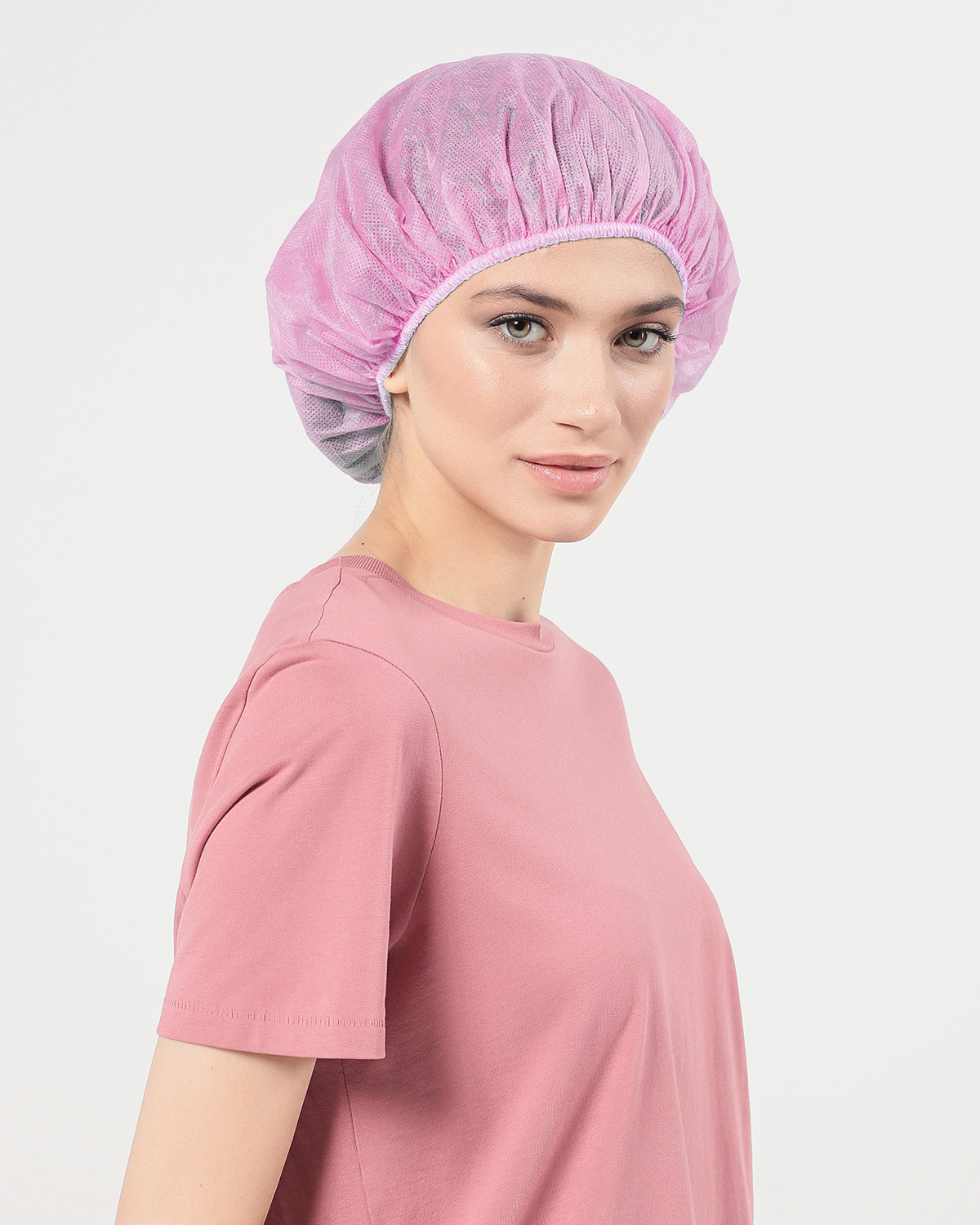 Описание: Шапочка из спанбонда типа «берет». Повышенная плотность шапочки (20 г/м2) делает внешний вид пользователя более аккуратным. Снабжена специальными тянущимися эластичными резинками, позволяющими надёжно крепиться на голове.  Предназначена для защиты волос пользователя и соблюдения чистоты и гигиены в помещениях. Не пропускает влагу, но имеет хорошую воздухопроницаемость. После себя не оставляет ворсинок на коже или волосах. Применяется в медицинских учреждениях для соблюдения чистоты и гигиены, а также в косметологических салонах, пищевой, электронной промышленности. Цвет-розовый.