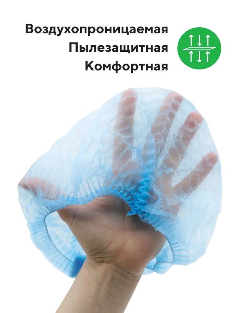 Шапочка одноразовая спанбонд Шарлотта голубая, 250 шт