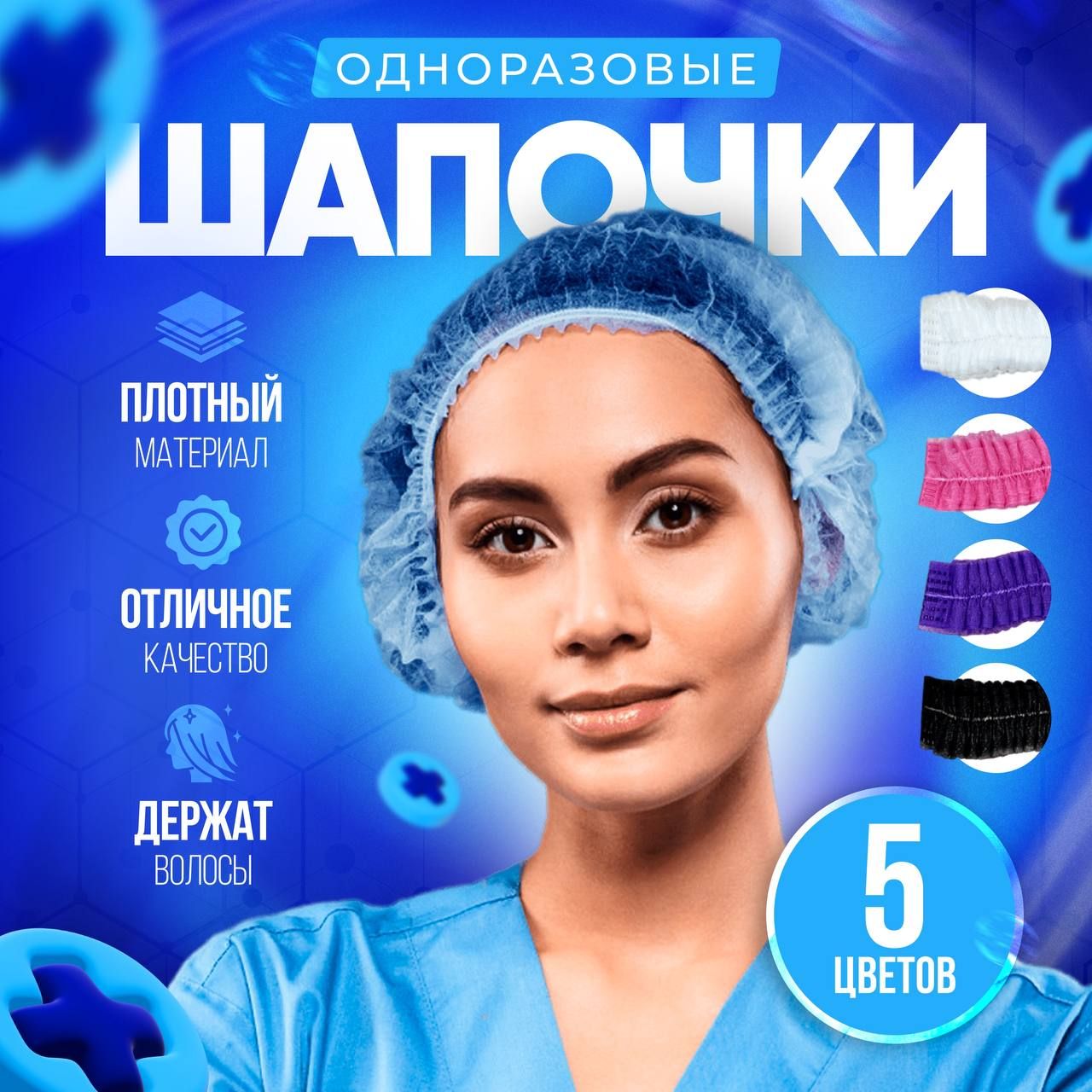 Шапочки одноразовые медицинские 100 шт Шарлотта для волос голубые