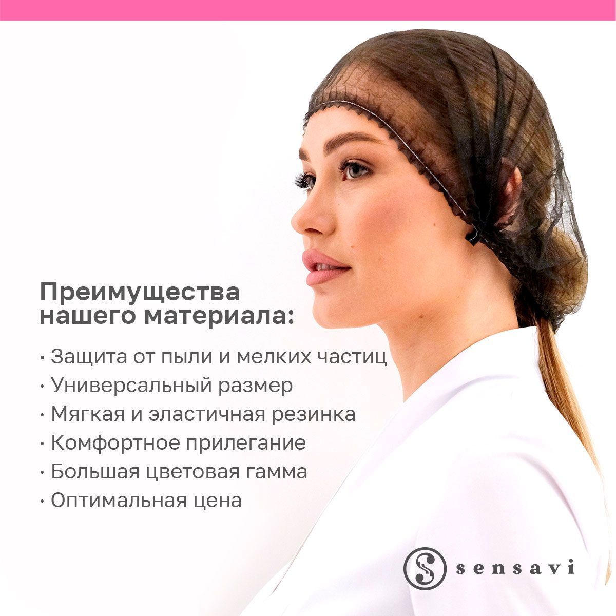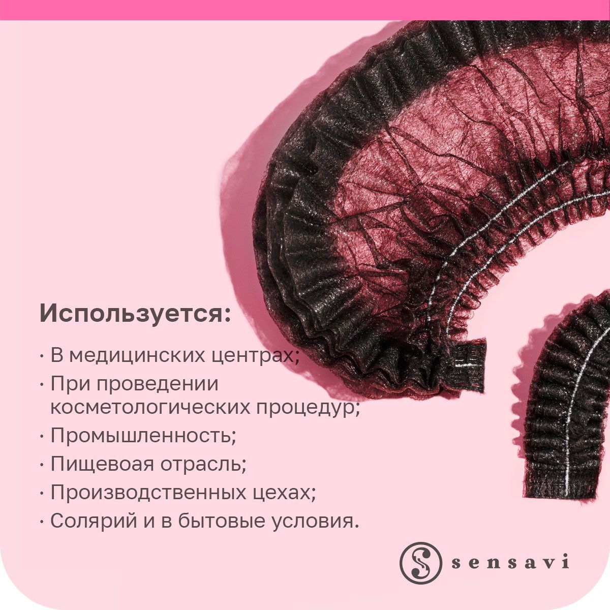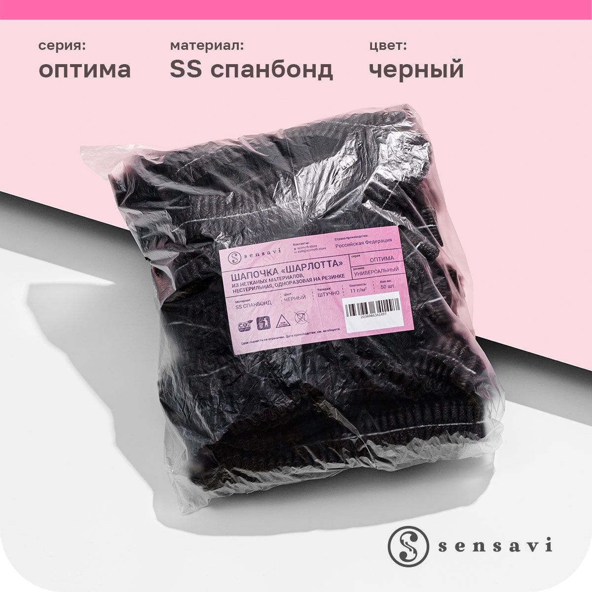 Шапочки одноразовые медицинские из спанбонда, черный, 50 штук sensavi Шапка берет шарлотка для солярия