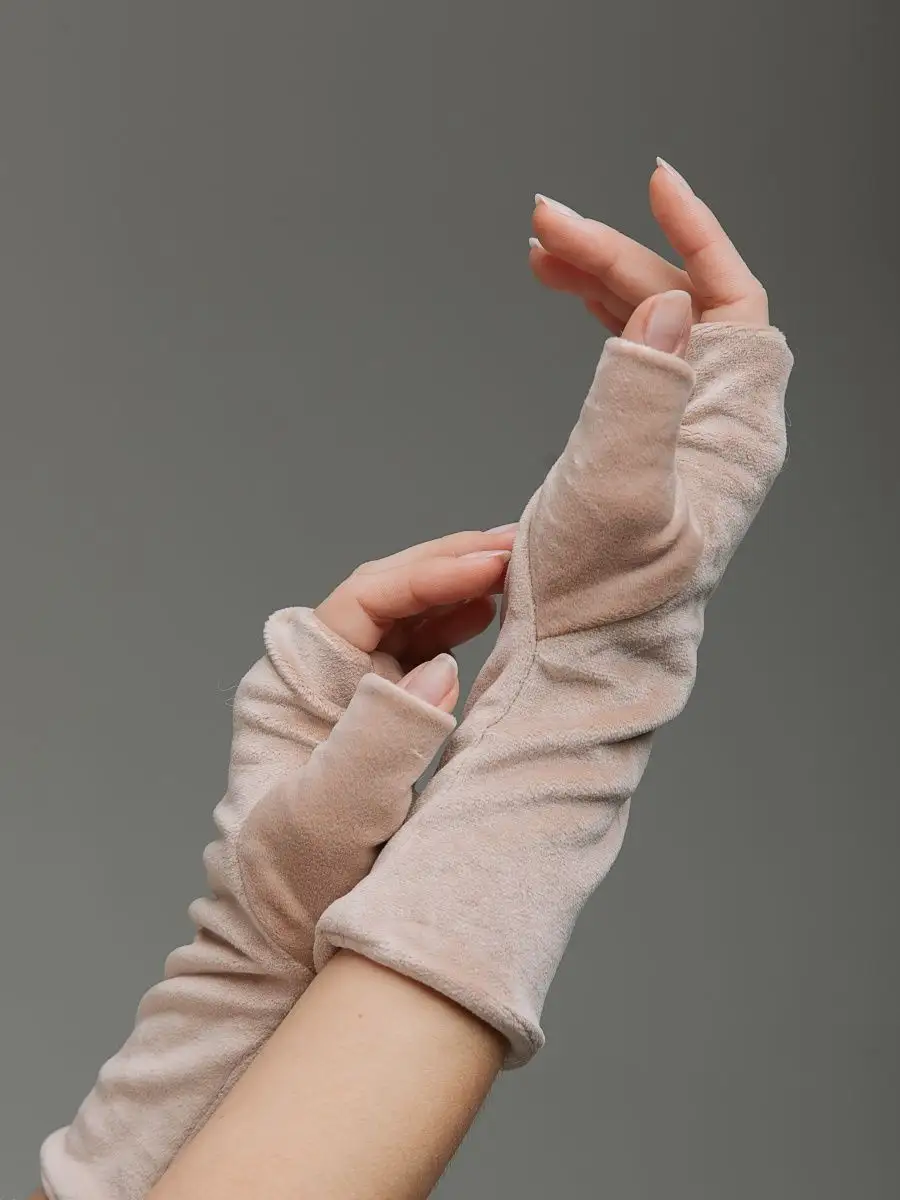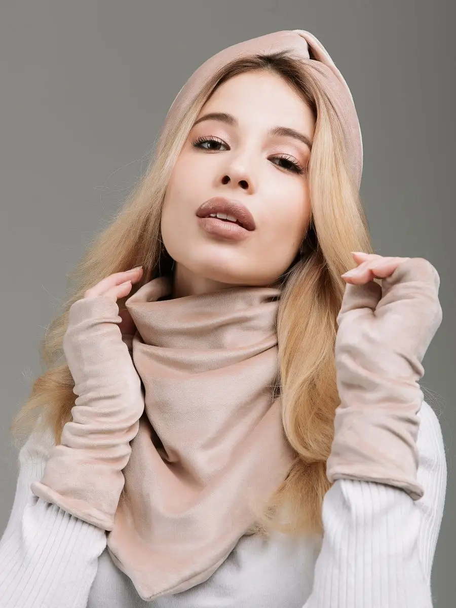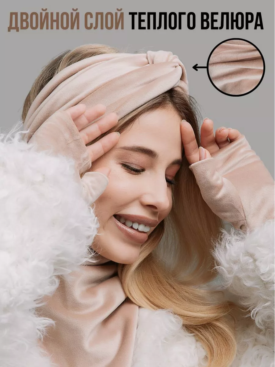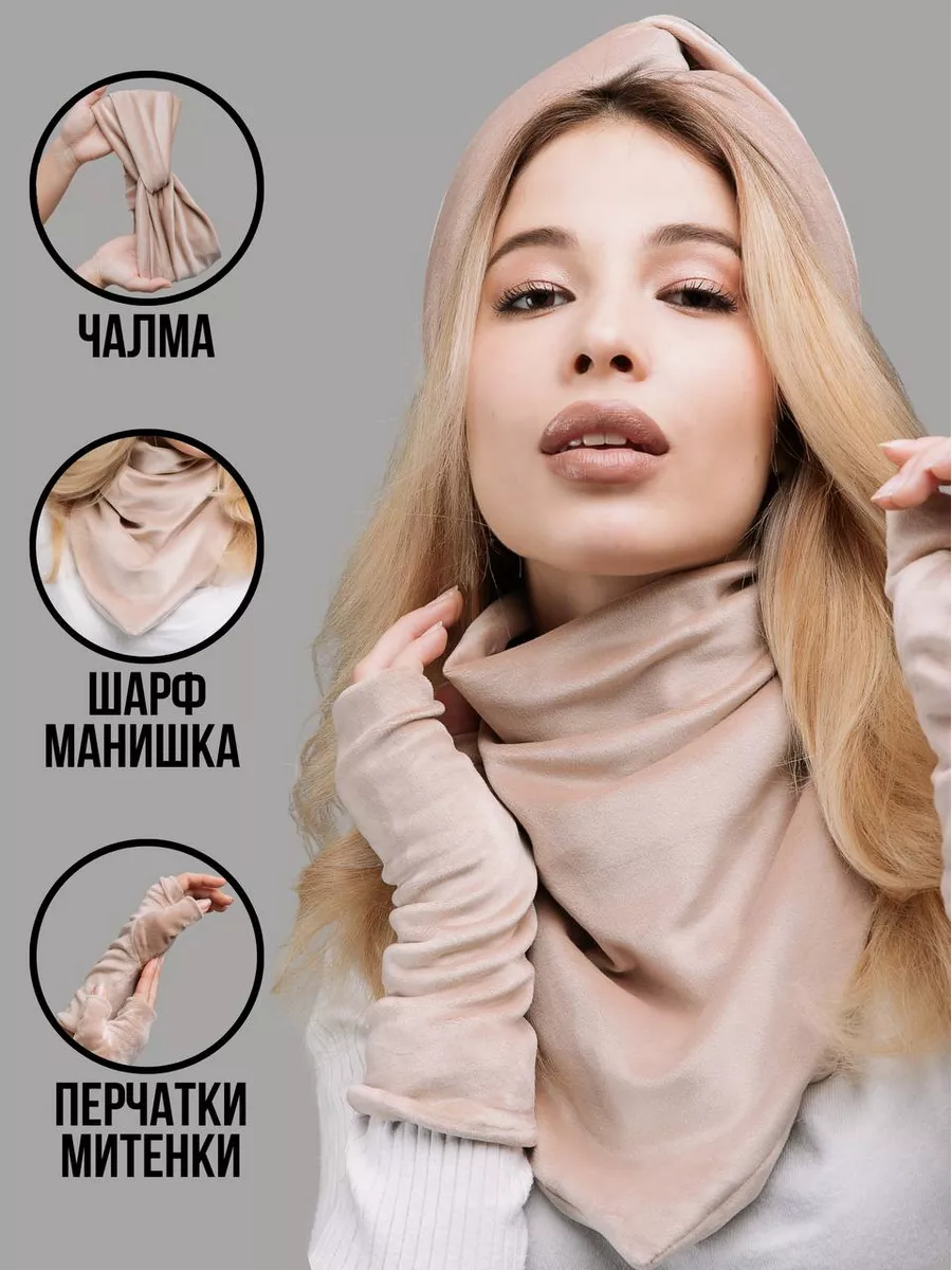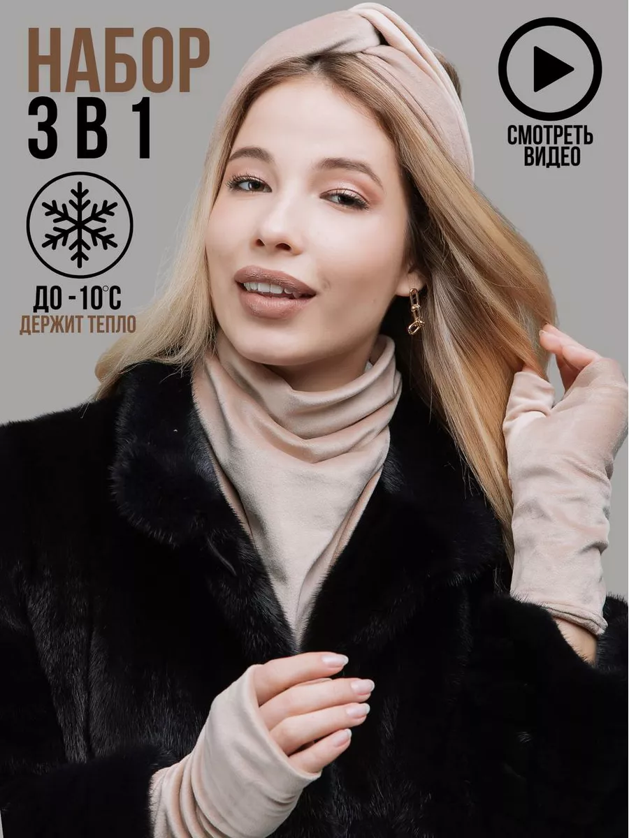 Описание: Комплект зимний - это набор стильных аксессуаров (шапка повязка на голову женская, манишка, перчатки - митенки), который будет согревать Вас, и дарить тепло и уют, начиная с конца сентября и до первых теплых весенних дней.Комплект аксессуаров российского бренда Sweet Cold избавит вас от рутины шопинга и необходимости подбирать каждый элемент отдельно и думать о том, сочетается ли повязка с перчатками, подойдет ли шарф под пальто или куртку, насколько хорошо будут смотреться перчатки с другими, уже имеющимися аксессуарами.Наш великолепный велюровый набор состоит из трех самых главных элементов, которые нужны каждой современной женщине, чтобы оставаться в тепле и комфорте осенью и зимой.Первый элемент из комплекта - повязки на голову для женщин.Повязка для головы станет не просто обычным головным убором, а прекрасным дополнением к вашей прическе. Такая теплая повязка на голову - это возможность сохранить голову в тепле с любой прической: будь то высокий хвост или аккуратный пучок. Повязки на голову обеспечивают сохранность вашей укладки. Вам не нужно будет снова искать компромиссы: замерзнуть без шапки, но остаться с укладкой, или испортить тщательно уложенные волосы плотной шапкой, но остаться в тепле. Повязка на уши защитит лоб и уши от ветра и холода и при этом спасет плотные локоны и работу утюжка для волос.Второй элемент из комплекта - перчатки. Перчатки митенки женские выполнены из той же, ткани, что и другие элементы комплекта. Варежки без пальцев идеально садятся на хрупкую женскую руку, не тянут в швах между пальцами, не доставляют дискомфорт в ладони. Это не простые перчатки, а модные митенки длинные - стильные перчатки с открытыми пальцами. В них всегда будет удобно воспользоваться телефоном на улице, застегнуть пуговицу или молнию на верхней одежде поправить сережку или открыть сумочку, не снимая их с руки. Перчатки митенки - это, с одной стороны, дополнительное удобство и функциональность, а с другой стороны, - возможность продемонстрировать окружающим идеальный маникюр и украшения. Такие рукава митенки можно встроить в образ и даже не снимать в помещении, дополнив ими образ, например, с объемным джемпером или пуловером оверсайз.Третий элемент набора - это снуд манишка. Невероятно мягкий шарф женский обеспечит комфорт и тепло вашей шее в любую непогоду и ненастье. Шарф платок не будет создавать дополнительный объем в зоне лица и не испортит макияж. Манишка женская смотрится невероятно изящно и очень женственно. Шарф воротник станет настоящей палочкой-выручалочкой, если вам захочется надеть джемпер без горла или блузку с вырезом в прохладную погоду. Самое главное, что вам не нужно заботиться о том, как красиво повязать шарф на шею. Наши манишки для женщин сшиты таким образом, что образуют красивые ниспадающие складки. Манишки Sweet Cold совершенно несложно надеть - просто накиньте его через голову, и ваш идеальный шарфик женский готов!Демисезонный комплект выполнен из мягчайшего велюра, приятного к телу. Материал, который не электризуется, не колется, не раздражает кожу. Бархатистая поверхность смотрится дорого и роскошно, на ней не остается катышков и затяжек, ткань не выцветает и не садится даже после многократных стирок, нежные ворсинки не вылезают и не осыпаются. Все элементы, входящие в зимний комплект, выполн