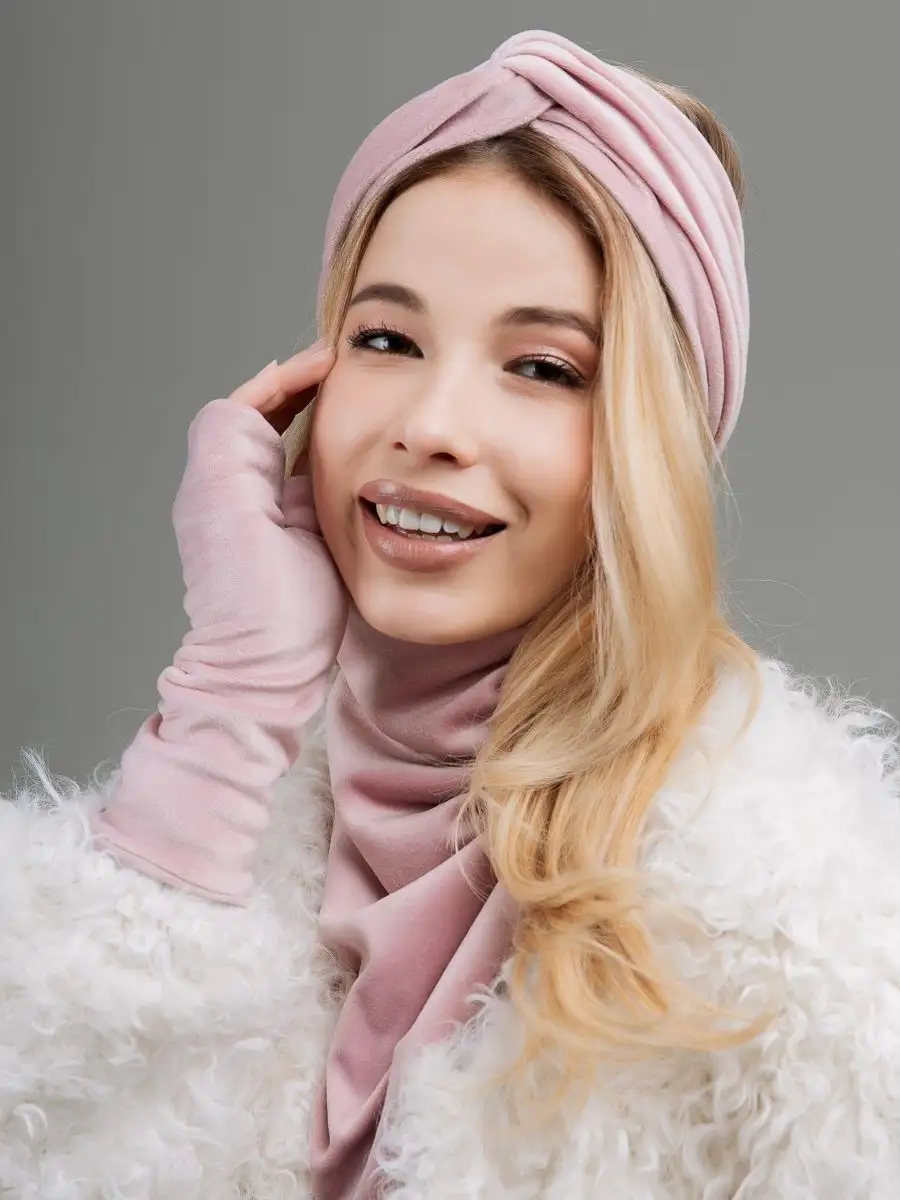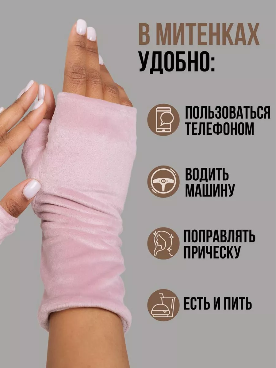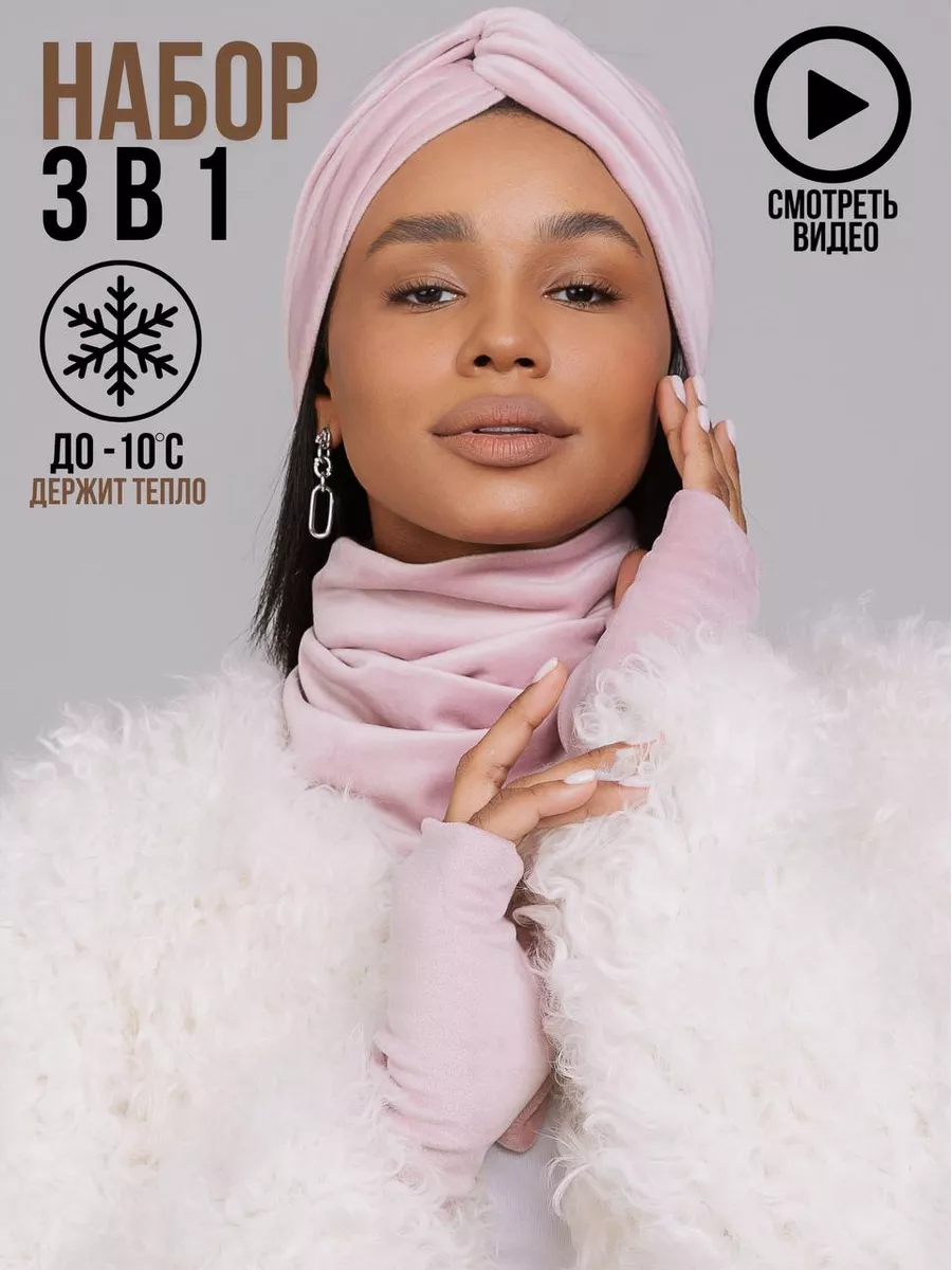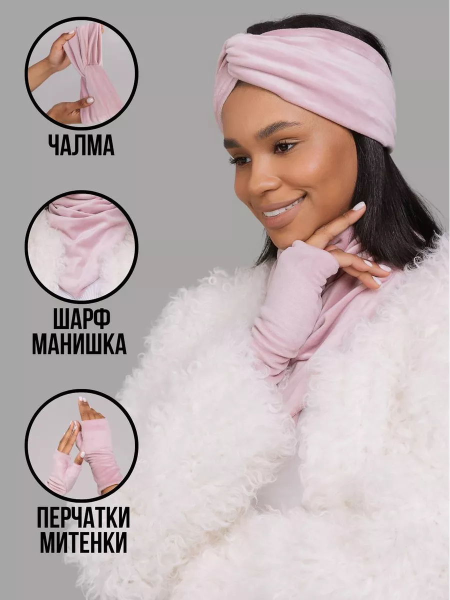 Описание: Комплект зимний - это набор стильных аксессуаров (шапка повязка на голову женская, манишка, перчатки - митенки), который будет согревать Вас, и дарить тепло и уют, начиная с конца сентября и до первых теплых весенних дней.Комплект аксессуаров российского бренда Sweet Cold избавит вас от рутины шопинга и необходимости подбирать каждый элемент отдельно и думать о том, сочетается ли повязка с перчатками, подойдет ли шарф под пальто или куртку, насколько хорошо будут смотреться перчатки с другими, уже имеющимися аксессуарами.Наш великолепный велюровый набор состоит из трех самых главных элементов, которые нужны каждой современной женщине, чтобы оставаться в тепле и комфорте осенью и зимой.Первый элемент из комплекта - повязки на голову для женщин.Повязка для головы станет не просто обычным головным убором, а прекрасным дополнением к вашей прическе. Такая теплая повязка на голову - это возможность сохранить голову в тепле с любой прической: будь то высокий хвост или аккуратный пучок. Повязки на голову обеспечивают сохранность вашей укладки. Вам не нужно будет снова искать компромиссы: замерзнуть без шапки, но остаться с укладкой, или испортить тщательно уложенные волосы плотной шапкой, но остаться в тепле. Повязка на уши защитит лоб и уши от ветра и холода и при этом спасет плотные локоны и работу утюжка для волос.Второй элемент из комплекта - перчатки. Перчатки митенки женские выполнены из той же, ткани, что и другие элементы комплекта. Варежки без пальцев идеально садятся на хрупкую женскую руку, не тянут в швах между пальцами, не доставляют дискомфорт в ладони. Это не простые перчатки, а модные митенки длинные - стильные перчатки с открытыми пальцами. В них всегда будет удобно воспользоваться телефоном на улице, застегнуть пуговицу или молнию на верхней одежде поправить сережку или открыть сумочку, не снимая их с руки. Перчатки митенки - это, с одной стороны, дополнительное удобство и функциональность, а с другой стороны, - возможность продемонстрировать окружающим идеальный маникюр и украшения. Такие рукава митенки можно встроить в образ и даже не снимать в помещении, дополнив ими образ, например, с объемным джемпером или пуловером оверсайз.Третий элемент набора - это снуд манишка. Невероятно мягкий шарф женский обеспечит комфорт и тепло вашей шее в любую непогоду и ненастье. Шарф платок не будет создавать дополнительный объем в зоне лица и не испортит макияж. Манишка женская смотрится невероятно изящно и очень женственно. Шарф воротник станет настоящей палочкой-выручалочкой, если вам захочется надеть джемпер без горла или блузку с вырезом в прохладную погоду. Самое главное, что вам не нужно заботиться о том, как красиво повязать шарф на шею. Наши манишки для женщин сшиты таким образом, что образуют красивые ниспадающие складки. Манишки Sweet Cold совершенно несложно надеть - просто накиньте его через голову, и ваш идеальный шарфик женский готов!Демисезонный комплект выполнен из мягчайшего велюра, приятного к телу. Материал, который не электризуется, не колется, не раздражает кожу. Бархатистая поверхность смотрится дорого и роскошно, на ней не остается катышков и затяжек, ткань не выцветает и не садится даже после многократных стирок, нежные ворсинки не вылезают и не осыпаются. Все элементы, входящие в зимний комплект, выполн