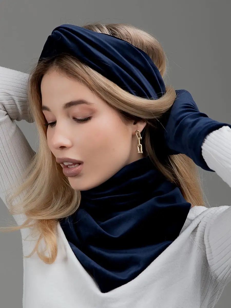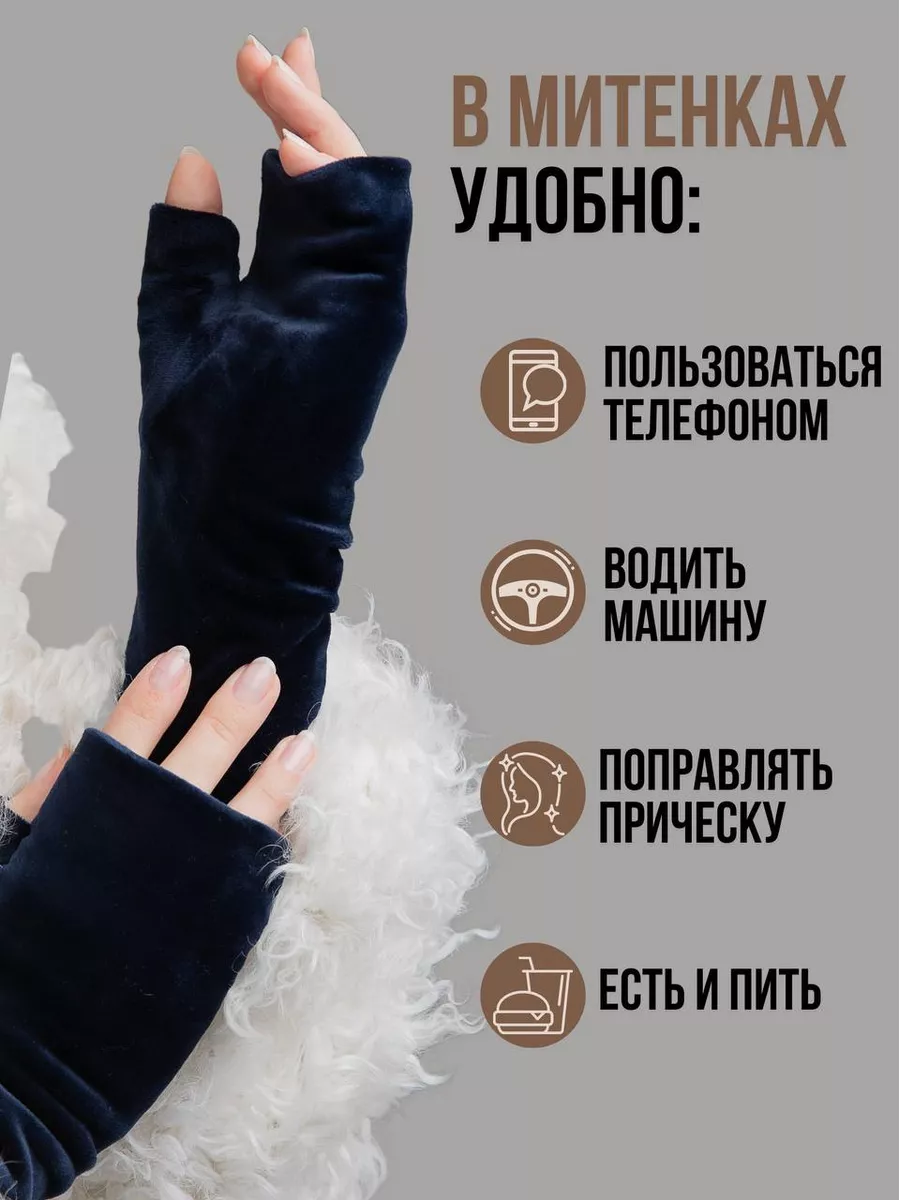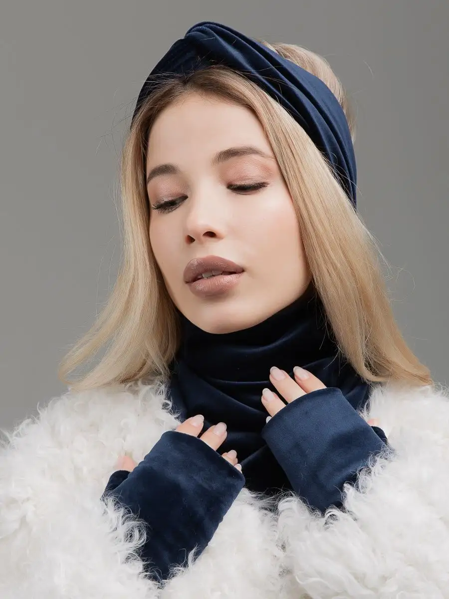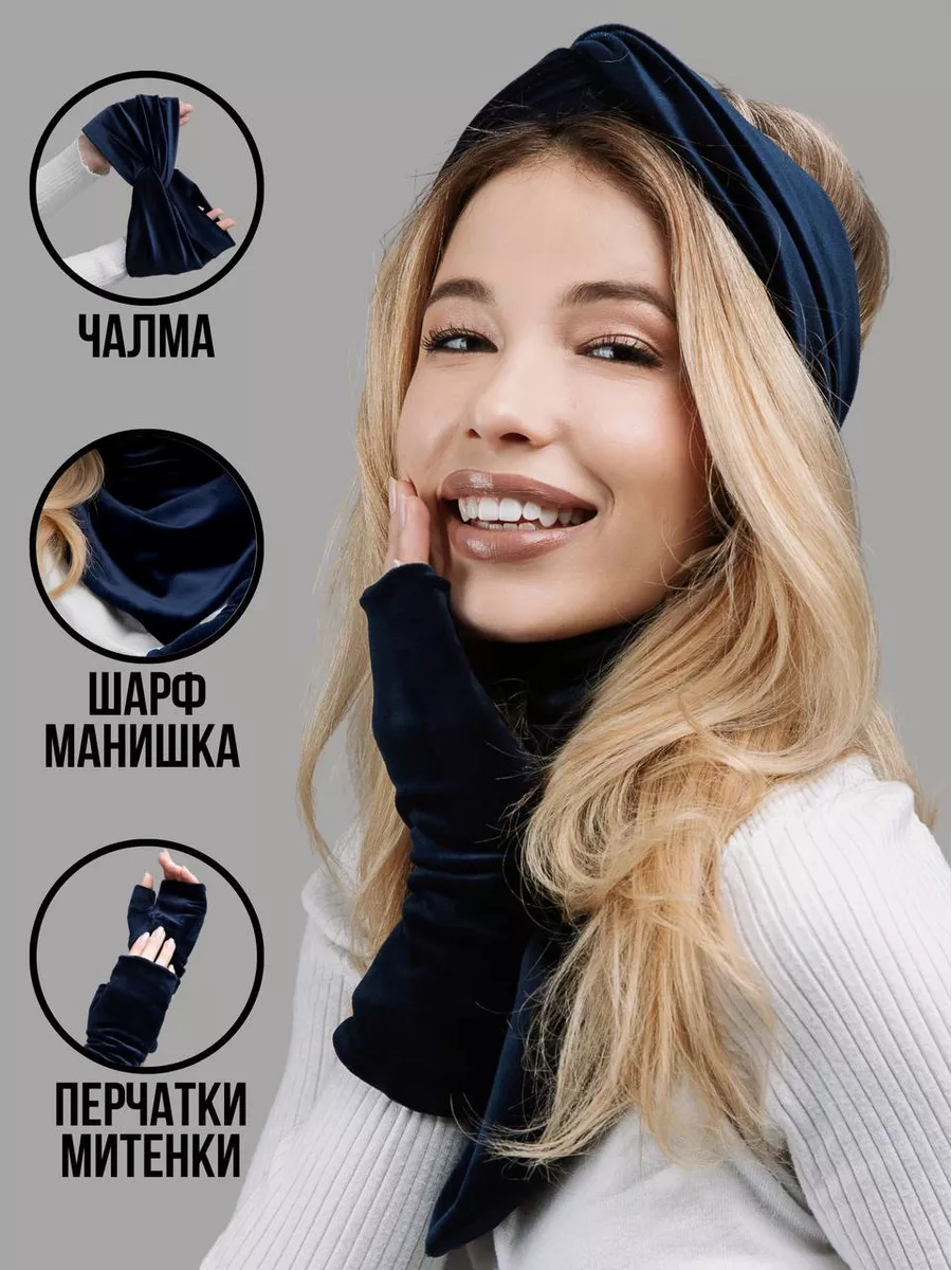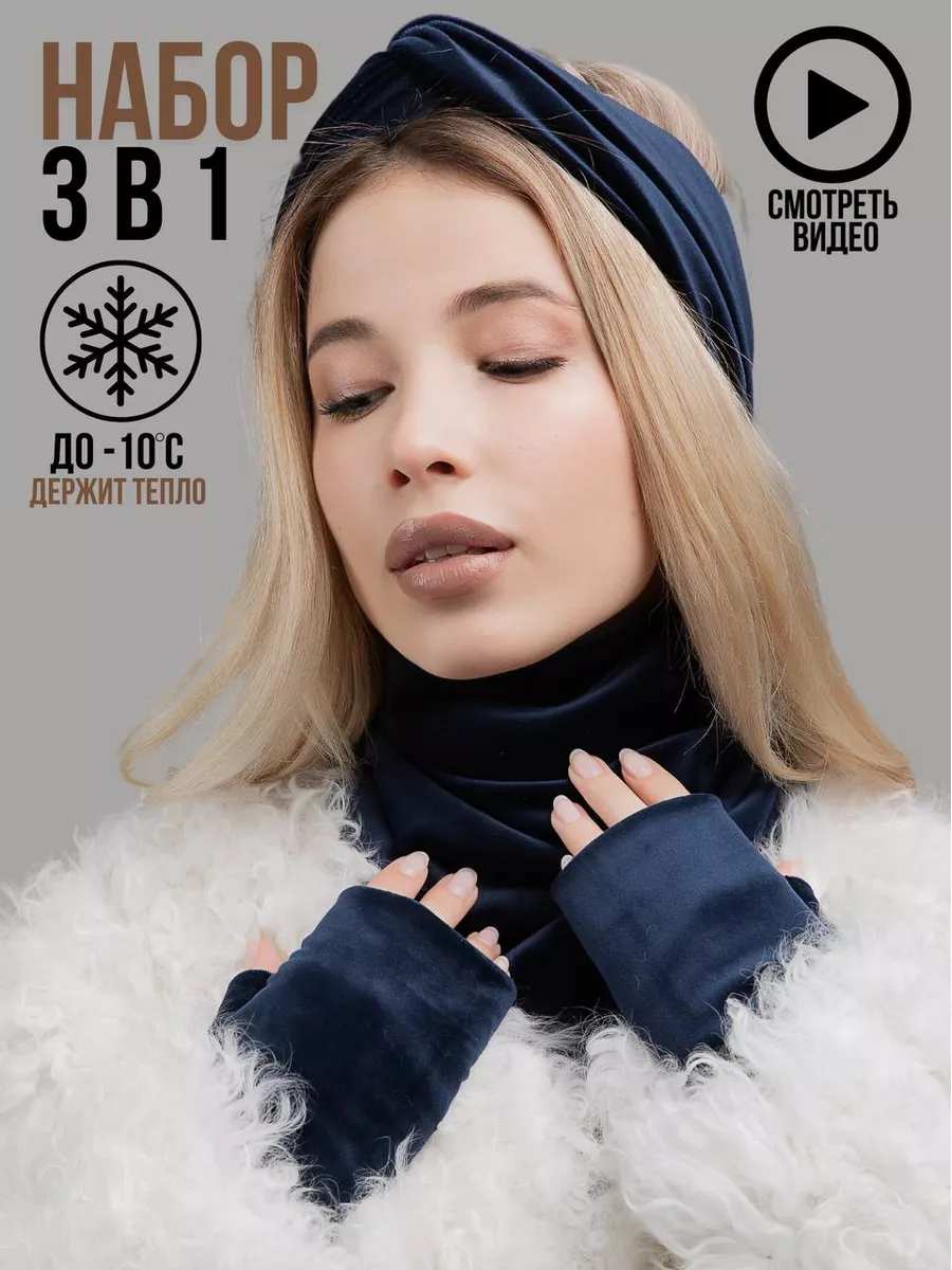 Описание: Комплект зимний - это набор стильных аксессуаров (шапка повязка на голову женская, манишка, перчатки - митенки), который будет согревать Вас, и дарить тепло и уют, начиная с конца сентября и до первых теплых весенних дней.Комплект аксессуаров российского бренда Sweet Cold избавит вас от рутины шопинга и необходимости подбирать каждый элемент отдельно и думать о том, сочетается ли повязка с перчатками, подойдет ли шарф под пальто или куртку, насколько хорошо будут смотреться перчатки с другими, уже имеющимися аксессуарами.Наш великолепный велюровый набор состоит из трех самых главных элементов, которые нужны каждой современной женщине, чтобы оставаться в тепле и комфорте осенью и зимой.Первый элемент из комплекта - повязки на голову для женщин.Повязка для головы станет не просто обычным головным убором, а прекрасным дополнением к вашей прическе. Такая теплая повязка на голову - это возможность сохранить голову в тепле с любой прической: будь то высокий хвост или аккуратный пучок. Повязки на голову обеспечивают сохранность вашей укладки. Вам не нужно будет снова искать компромиссы: замерзнуть без шапки, но остаться с укладкой, или испортить тщательно уложенные волосы плотной шапкой, но остаться в тепле. Повязка на уши защитит лоб и уши от ветра и холода и при этом спасет плотные локоны и работу утюжка для волос.Второй элемент из комплекта - перчатки. Перчатки митенки женские выполнены из той же, ткани, что и другие элементы комплекта. Варежки без пальцев идеально садятся на хрупкую женскую руку, не тянут в швах между пальцами, не доставляют дискомфорт в ладони. Это не простые перчатки, а модные митенки длинные - стильные перчатки с открытыми пальцами. В них всегда будет удобно воспользоваться телефоном на улице, застегнуть пуговицу или молнию на верхней одежде поправить сережку или открыть сумочку, не снимая их с руки. Перчатки митенки - это, с одной стороны, дополнительное удобство и функциональность, а с другой стороны, - возможность продемонстрировать окружающим идеальный маникюр и украшения. Такие рукава митенки можно встроить в образ и даже не снимать в помещении, дополнив ими образ, например, с объемным джемпером или пуловером оверсайз.Третий элемент набора - это снуд манишка. Невероятно мягкий шарф женский обеспечит комфорт и тепло вашей шее в любую непогоду и ненастье. Шарф платок не будет создавать дополнительный объем в зоне лица и не испортит макияж. Манишка женская смотрится невероятно изящно и очень женственно. Шарф воротник станет настоящей палочкой-выручалочкой, если вам захочется надеть джемпер без горла или блузку с вырезом в прохладную погоду. Самое главное, что вам не нужно заботиться о том, как красиво повязать шарф на шею. Наши манишки для женщин сшиты таким образом, что образуют красивые ниспадающие складки. Манишки Sweet Cold совершенно несложно надеть - просто накиньте его через голову, и ваш идеальный шарфик женский готов!Демисезонный комплект выполнен из мягчайшего велюра, приятного к телу. Материал, который не электризуется, не колется, не раздражает кожу. Бархатистая поверхность смотрится дорого и роскошно, на ней не остается катышков и затяжек, ткань не выцветает и не садится даже после многократных стирок, нежные ворсинки не вылезают и не осыпаются. Все элементы, входящие в зимний комплект, выполн