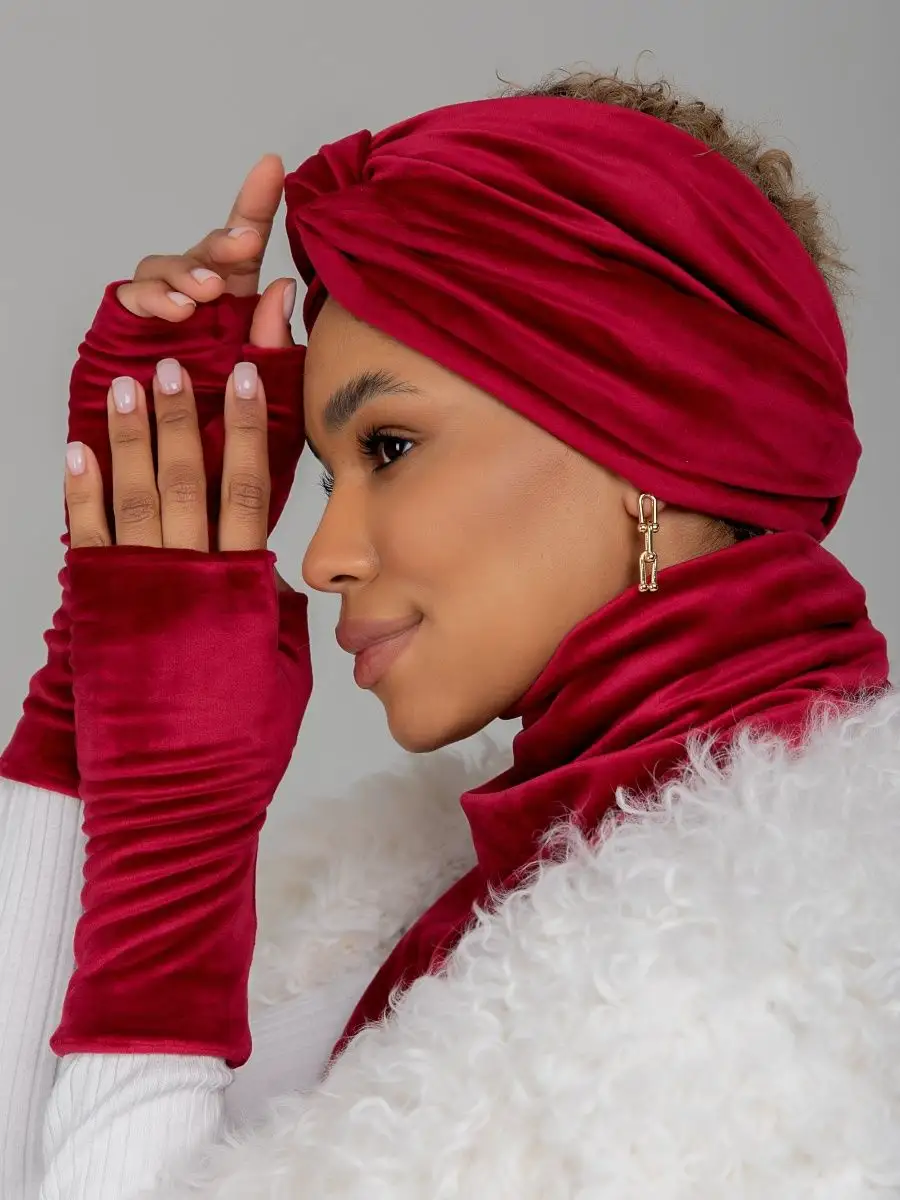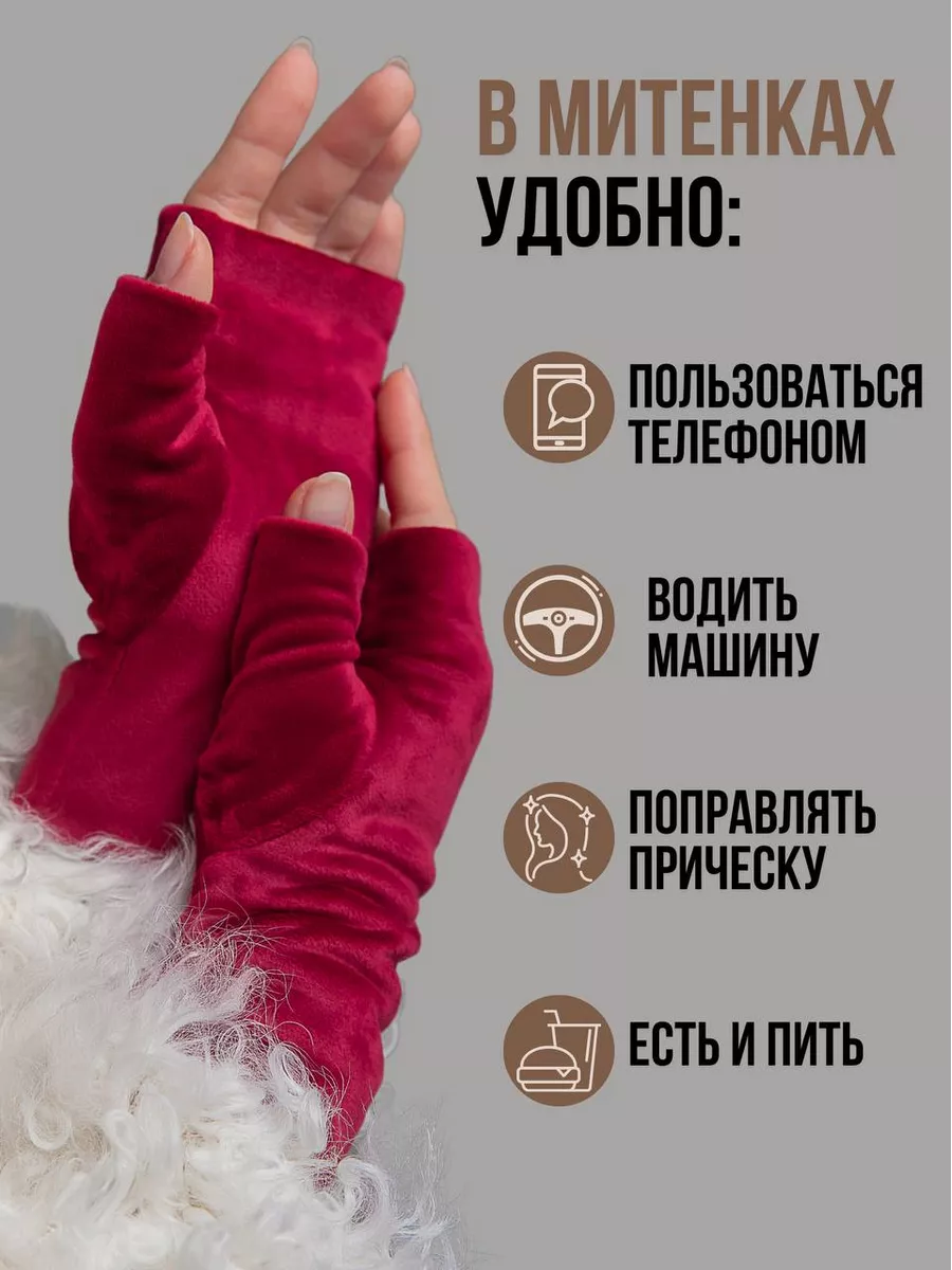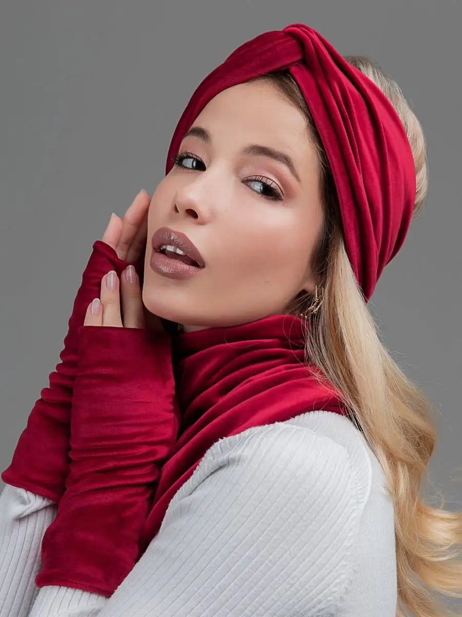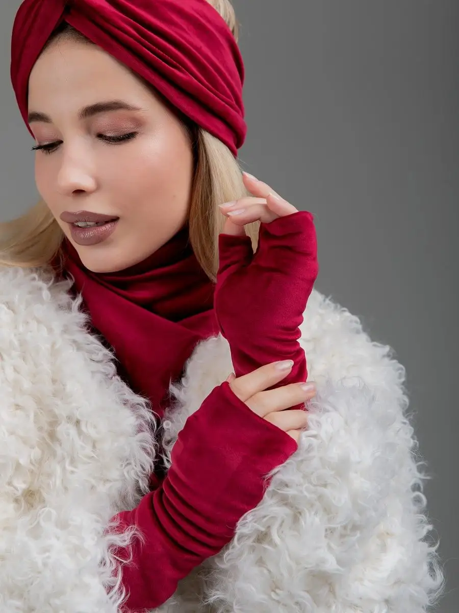 Описание: Комплект зимний - это набор стильных аксессуаров (шапка повязка на голову женская, манишка, перчатки - митенки), который будет согревать Вас, и дарить тепло и уют, начиная с конца сентября и до первых теплых весенних дней.Комплект аксессуаров российского бренда Sweet Cold избавит вас от рутины шопинга и необходимости подбирать каждый элемент отдельно и думать о том, сочетается ли повязка с перчатками, подойдет ли шарф под пальто или куртку, насколько хорошо будут смотреться перчатки с другими, уже имеющимися аксессуарами.Наш великолепный велюровый набор состоит из трех самых главных элементов, которые нужны каждой современной женщине, чтобы оставаться в тепле и комфорте осенью и зимой.Первый элемент из комплекта - повязки на голову для женщин.Повязка для головы станет не просто обычным головным убором, а прекрасным дополнением к вашей прическе. Такая теплая повязка на голову - это возможность сохранить голову в тепле с любой прической: будь то высокий хвост или аккуратный пучок. Повязки на голову обеспечивают сохранность вашей укладки. Вам не нужно будет снова искать компромиссы: замерзнуть без шапки, но остаться с укладкой, или испортить тщательно уложенные волосы плотной шапкой, но остаться в тепле. Повязка на уши защитит лоб и уши от ветра и холода и при этом спасет плотные локоны и работу утюжка для волос.Второй элемент из комплекта - перчатки. Перчатки митенки женские выполнены из той же, ткани, что и другие элементы комплекта. Варежки без пальцев идеально садятся на хрупкую женскую руку, не тянут в швах между пальцами, не доставляют дискомфорт в ладони. Это не простые перчатки, а модные митенки длинные - стильные перчатки с открытыми пальцами. В них всегда будет удобно воспользоваться телефоном на улице, застегнуть пуговицу или молнию на верхней одежде поправить сережку или открыть сумочку, не снимая их с руки. Перчатки митенки - это, с одной стороны, дополнительное удобство и функциональность, а с другой стороны, - возможность продемонстрировать окружающим идеальный маникюр и украшения. Такие рукава митенки можно встроить в образ и даже не снимать в помещении, дополнив ими образ, например, с объемным джемпером или пуловером оверсайз.Третий элемент набора - это снуд манишка. Невероятно мягкий шарф женский обеспечит комфорт и тепло вашей шее в любую непогоду и ненастье. Шарф платок не будет создавать дополнительный объем в зоне лица и не испортит макияж. Манишка женская смотрится невероятно изящно и очень женственно. Шарф воротник станет настоящей палочкой-выручалочкой, если вам захочется надеть джемпер без горла или блузку с вырезом в прохладную погоду. Самое главное, что вам не нужно заботиться о том, как красиво повязать шарф на шею. Наши манишки для женщин сшиты таким образом, что образуют красивые ниспадающие складки. Манишки Sweet Cold совершенно несложно надеть - просто накиньте его через голову, и ваш идеальный шарфик женский готов!Демисезонный комплект выполнен из мягчайшего велюра, приятного к телу. Материал, который не электризуется, не колется, не раздражает кожу. Бархатистая поверхность смотрится дорого и роскошно, на ней не остается катышков и затяжек, ткань не выцветает и не садится даже после многократных стирок, нежные ворсинки не вылезают и не осыпаются. Все элементы, входящие в зимний комплект, выполн