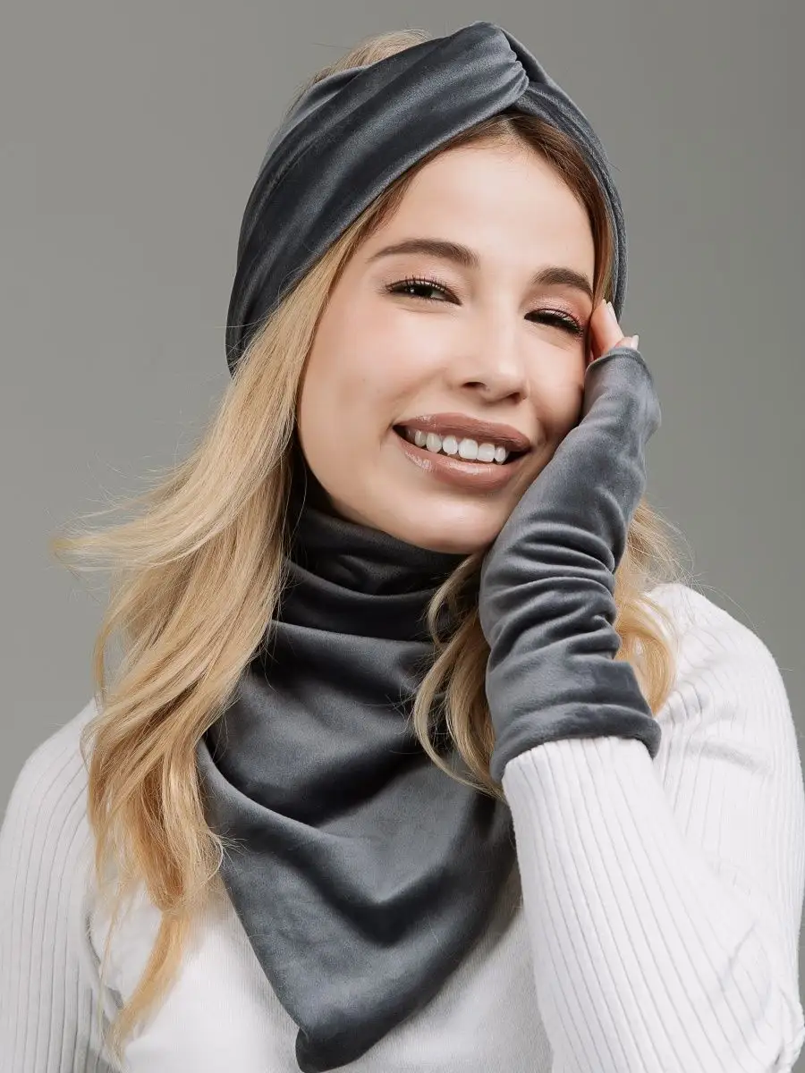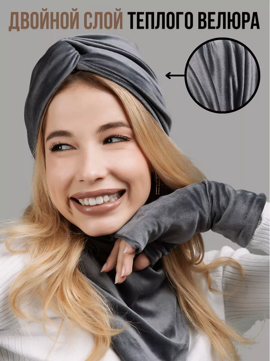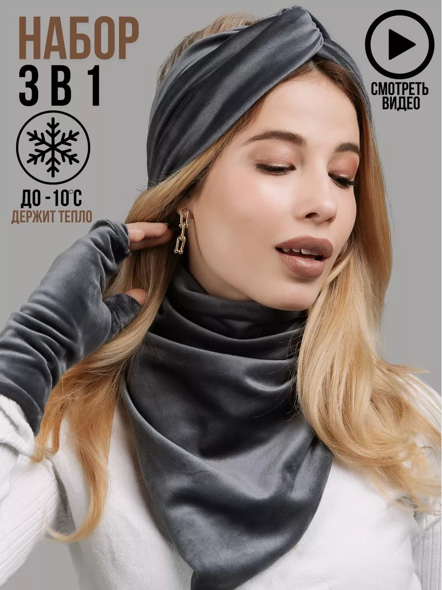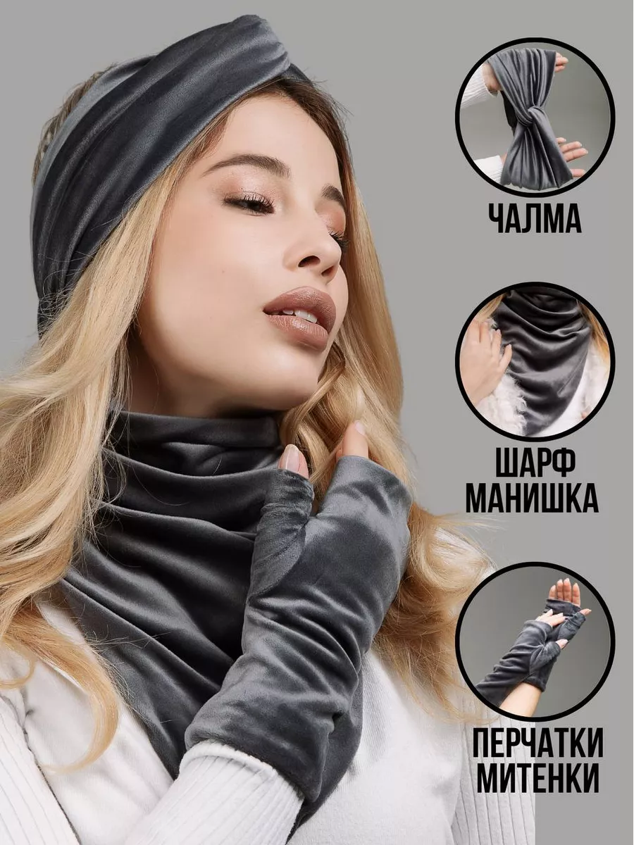 Описание: Комплект зимний - это набор стильных аксессуаров (шапка повязка на голову женская, манишка, перчатки - митенки), который будет согревать Вас, и дарить тепло и уют, начиная с конца сентября и до первых теплых весенних дней.Комплект аксессуаров российского бренда Sweet Cold избавит вас от рутины шопинга и необходимости подбирать каждый элемент отдельно и думать о том, сочетается ли повязка с перчатками, подойдет ли шарф под пальто или куртку, насколько хорошо будут смотреться перчатки с другими, уже имеющимися аксессуарами.Наш великолепный велюровый набор состоит из трех самых главных элементов, которые нужны каждой современной женщине, чтобы оставаться в тепле и комфорте осенью и зимой.Первый элемент из комплекта - повязки на голову для женщин.Повязка для головы станет не просто обычным головным убором, а прекрасным дополнением к вашей прическе. Такая теплая повязка на голову - это возможность сохранить голову в тепле с любой прической: будь то высокий хвост или аккуратный пучок. Повязки на голову обеспечивают сохранность вашей укладки. Вам не нужно будет снова искать компромиссы: замерзнуть без шапки, но остаться с укладкой, или испортить тщательно уложенные волосы плотной шапкой, но остаться в тепле. Повязка на уши защитит лоб и уши от ветра и холода и при этом спасет плотные локоны и работу утюжка для волос.Второй элемент из комплекта - перчатки. Перчатки митенки женские выполнены из той же, ткани, что и другие элементы комплекта. Варежки без пальцев идеально садятся на хрупкую женскую руку, не тянут в швах между пальцами, не доставляют дискомфорт в ладони. Это не простые перчатки, а модные митенки длинные - стильные перчатки с открытыми пальцами. В них всегда будет удобно воспользоваться телефоном на улице, застегнуть пуговицу или молнию на верхней одежде поправить сережку или открыть сумочку, не снимая их с руки. Перчатки митенки - это, с одной стороны, дополнительное удобство и функциональность, а с другой стороны, - возможность продемонстрировать окружающим идеальный маникюр и украшения. Такие рукава митенки можно встроить в образ и даже не снимать в помещении, дополнив ими образ, например, с объемным джемпером или пуловером оверсайз.Третий элемент набора - это снуд манишка. Невероятно мягкий шарф женский обеспечит комфорт и тепло вашей шее в любую непогоду и ненастье. Шарф платок не будет создавать дополнительный объем в зоне лица и не испортит макияж. Манишка женская смотрится невероятно изящно и очень женственно. Шарф воротник станет настоящей палочкой-выручалочкой, если вам захочется надеть джемпер без горла или блузку с вырезом в прохладную погоду. Самое главное, что вам не нужно заботиться о том, как красиво повязать шарф на шею. Наши манишки для женщин сшиты таким образом, что образуют красивые ниспадающие складки. Манишки Sweet Cold совершенно несложно надеть - просто накиньте его через голову, и ваш идеальный шарфик женский готов!Демисезонный комплект выполнен из мягчайшего велюра, приятного к телу. Материал, который не электризуется, не колется, не раздражает кожу. Бархатистая поверхность смотрится дорого и роскошно, на ней не остается катышков и затяжек, ткань не выцветает и не садится даже после многократных стирок, нежные ворсинки не вылезают и не осыпаются. Все элементы, входящие в зимний комплект, выполн