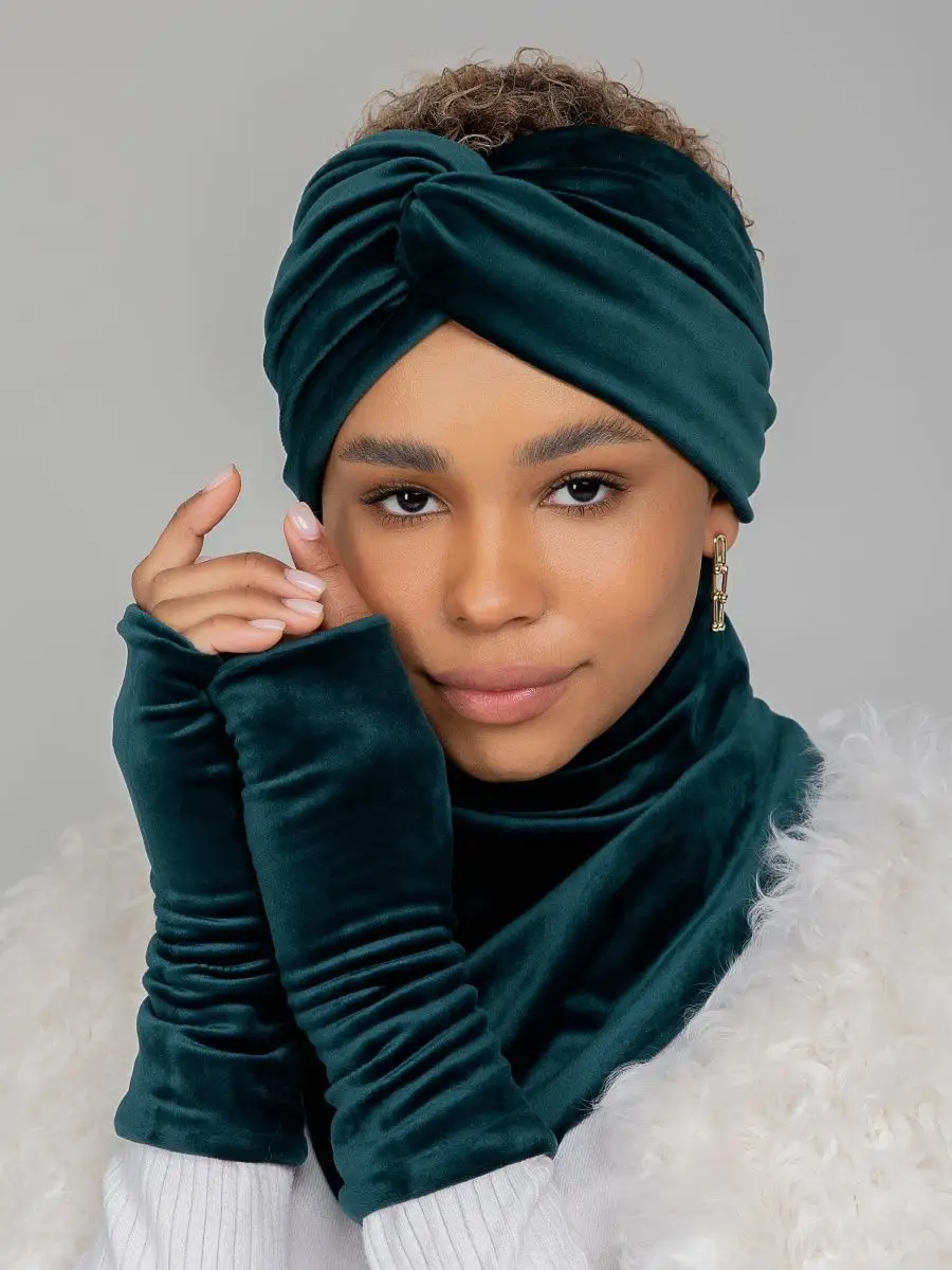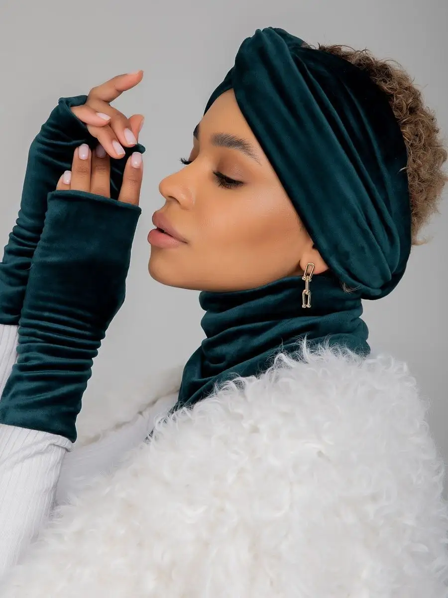 Описание: Комплект зимний - это набор стильных аксессуаров (шапка повязка на голову женская, манишка, перчатки - митенки), который будет согревать Вас, и дарить тепло и уют, начиная с конца сентября и до первых теплых весенних дней.Комплект аксессуаров российского бренда Sweet Cold избавит вас от рутины шопинга и необходимости подбирать каждый элемент отдельно и думать о том, сочетается ли повязка с перчатками, подойдет ли шарф под пальто или куртку, насколько хорошо будут смотреться перчатки с другими, уже имеющимися аксессуарами.Наш великолепный велюровый набор состоит из трех самых главных элементов, которые нужны каждой современной женщине, чтобы оставаться в тепле и комфорте осенью и зимой.Первый элемент из комплекта - повязки на голову для женщин.Повязка для головы станет не просто обычным головным убором, а прекрасным дополнением к вашей прическе. Такая теплая повязка на голову - это возможность сохранить голову в тепле с любой прической: будь то высокий хвост или аккуратный пучок. Повязки на голову обеспечивают сохранность вашей укладки. Вам не нужно будет снова искать компромиссы: замерзнуть без шапки, но остаться с укладкой, или испортить тщательно уложенные волосы плотной шапкой, но остаться в тепле. Повязка на уши защитит лоб и уши от ветра и холода и при этом спасет плотные локоны и работу утюжка для волос.Второй элемент из комплекта - перчатки. Перчатки митенки женские выполнены из той же, ткани, что и другие элементы комплекта. Варежки без пальцев идеально садятся на хрупкую женскую руку, не тянут в швах между пальцами, не доставляют дискомфорт в ладони. Это не простые перчатки, а модные митенки длинные - стильные перчатки с открытыми пальцами. В них всегда будет удобно воспользоваться телефоном на улице, застегнуть пуговицу или молнию на верхней одежде поправить сережку или открыть сумочку, не снимая их с руки. Перчатки митенки - это, с одной стороны, дополнительное удобство и функциональность, а с другой стороны, - возможность продемонстрировать окружающим идеальный маникюр и украшения. Такие рукава митенки можно встроить в образ и даже не снимать в помещении, дополнив ими образ, например, с объемным джемпером или пуловером оверсайз.Третий элемент набора - это снуд манишка. Невероятно мягкий шарф женский обеспечит комфорт и тепло вашей шее в любую непогоду и ненастье. Шарф платок не будет создавать дополнительный объем в зоне лица и не испортит макияж. Манишка женская смотрится невероятно изящно и очень женственно. Шарф воротник станет настоящей палочкой-выручалочкой, если вам захочется надеть джемпер без горла или блузку с вырезом в прохладную погоду. Самое главное, что вам не нужно заботиться о том, как красиво повязать шарф на шею. Наши манишки для женщин сшиты таким образом, что образуют красивые ниспадающие складки. Манишки Sweet Cold совершенно несложно надеть - просто накиньте его через голову, и ваш идеальный шарфик женский готов!Демисезонный комплект выполнен из мягчайшего велюра, приятного к телу. Материал, который не электризуется, не колется, не раздражает кожу. Бархатистая поверхность смотрится дорого и роскошно, на ней не остается катышков и затяжек, ткань не выцветает и не садится даже после многократных стирок, нежные ворсинки не вылезают и не осыпаются. Все элементы, входящие в зимний комплект, выполн