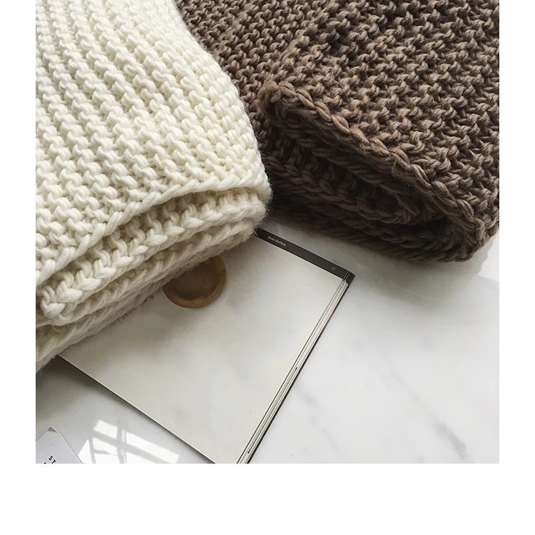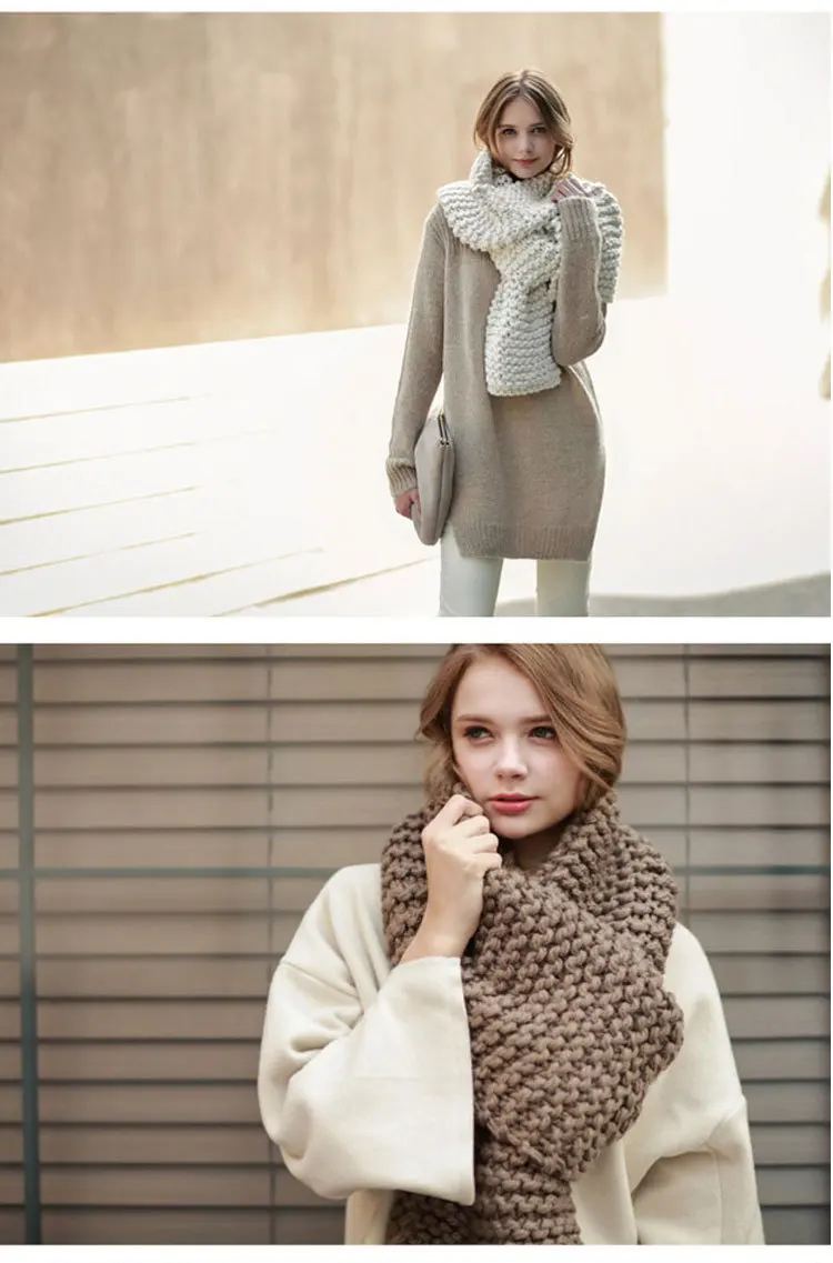 Новое платье 2020, однотонный толстый шерстяной шарф, женский осенне-зимний толстый вязаный шарф, мужской и женский шарф ручной работы