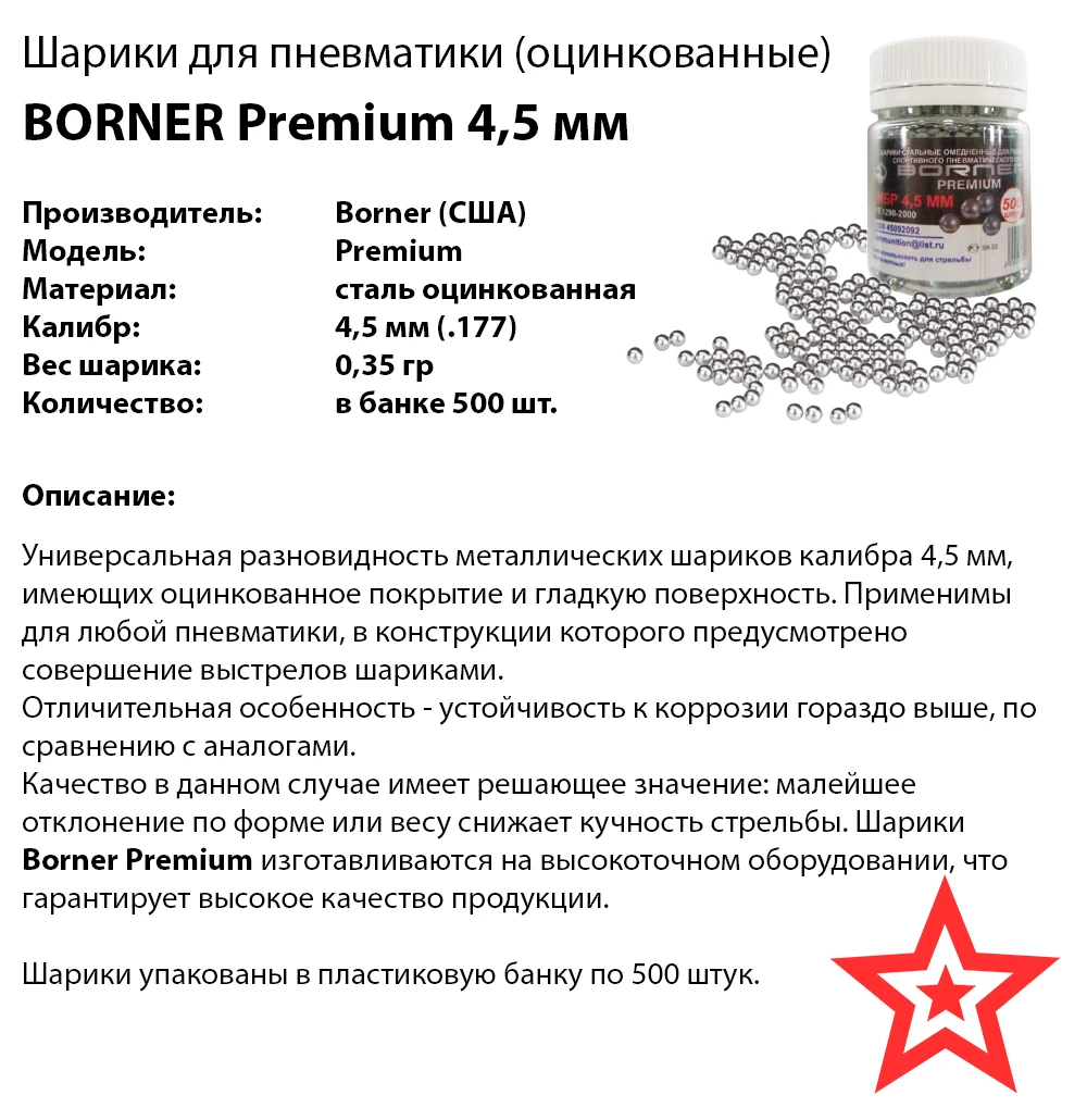 Шарики для пневматики оцинкованные BORNER Premium 4,5 мм 500 шт
