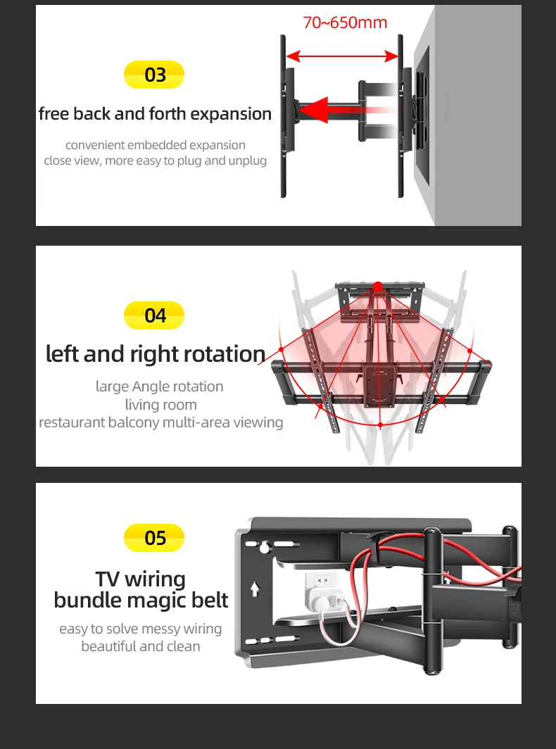 Шарнирное настенное крепление для телевизора с 6 рукоятками