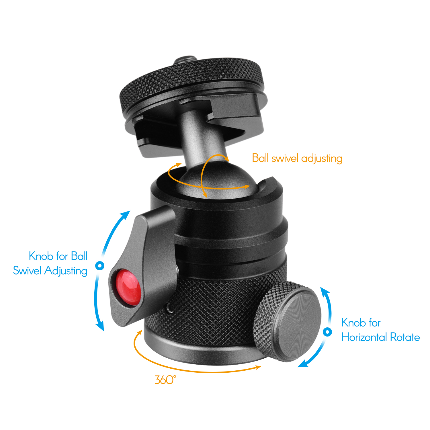 Компактная шаровая Головка мини-холодного башмака с винтом 1/4 дюйма и нижней резьбой, Универсально совместима с камерой, штативом, камерой, держателем телефона и светом для фотосъемки.