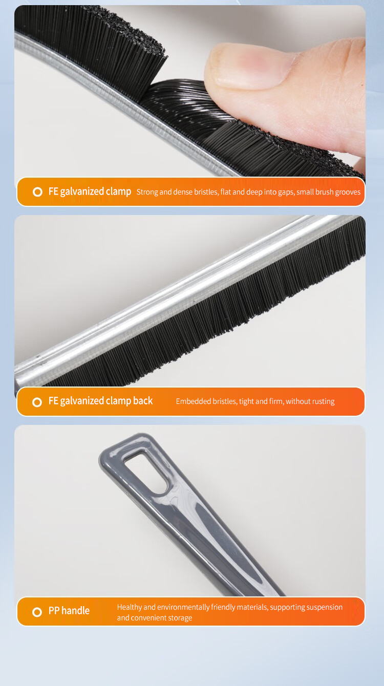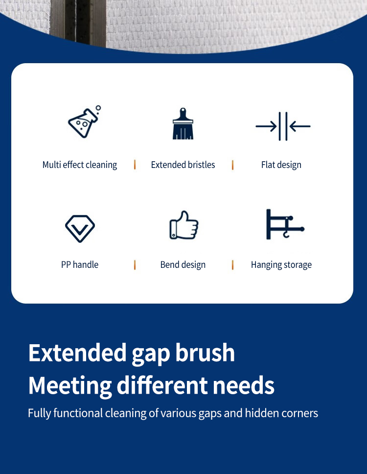 【Щетка для очистки зазоров 】 Плоская Насадка-щетка удобна для глубокого проникания в щели, тщательной очистки углов, таких как края раковины и оконные швы. Будь то зазоры вокруг кухонной раковины, раковины для ванной комнаты или крышки унитаза, щетка Gap может решить их все.