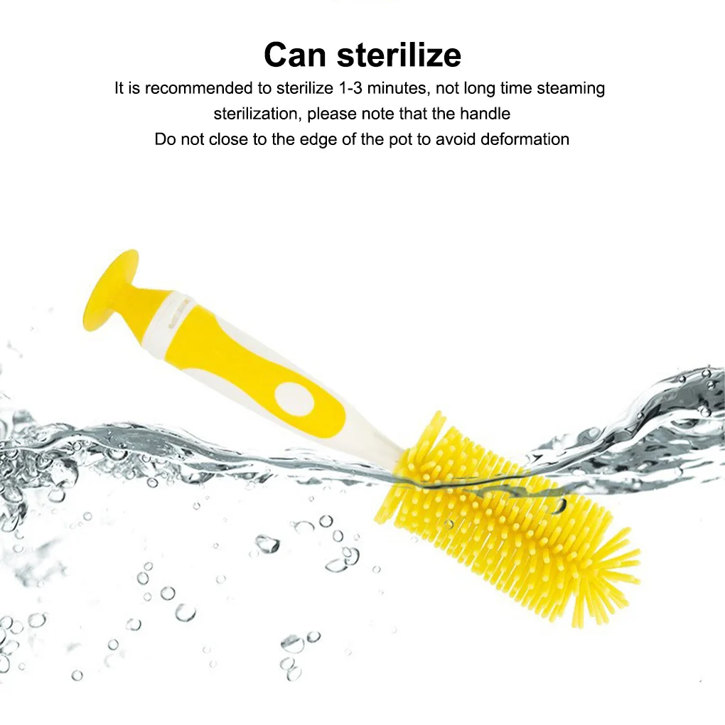 Щетка для детской бутылки, мягкая силиконовая щетка для мытья сосков, пластиковая ручка на 360 градусов, съемные ручные инструменты для чистки