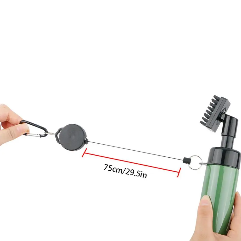 4. Практичный и прочный: с помощью шнурка из стальной проволоки и выдвижного шнурка вы можете легко прикрепить эту щетку для чистки гольфа к сумке для гольфа или петле для ремня и не беспокоиться о ее потере. Это удобный и беспроблемный инструмент для чистки клюшек для гольфа, который вы можете взять с собой куда угодно.