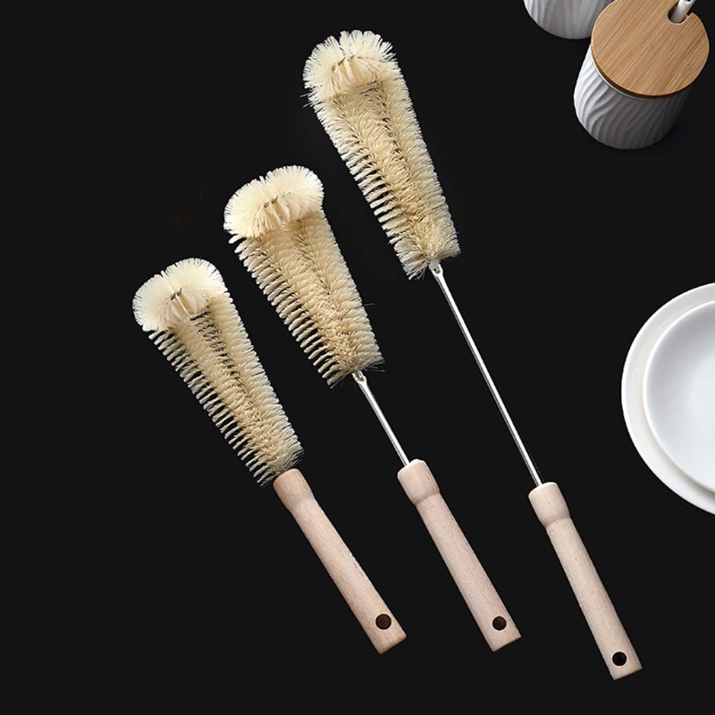 Kitchen Cleaning Brush L-shaped Coffee Tea Glass Cup Baby Bottle Brush Hangable Wooden Handle Cleaner Gadgets