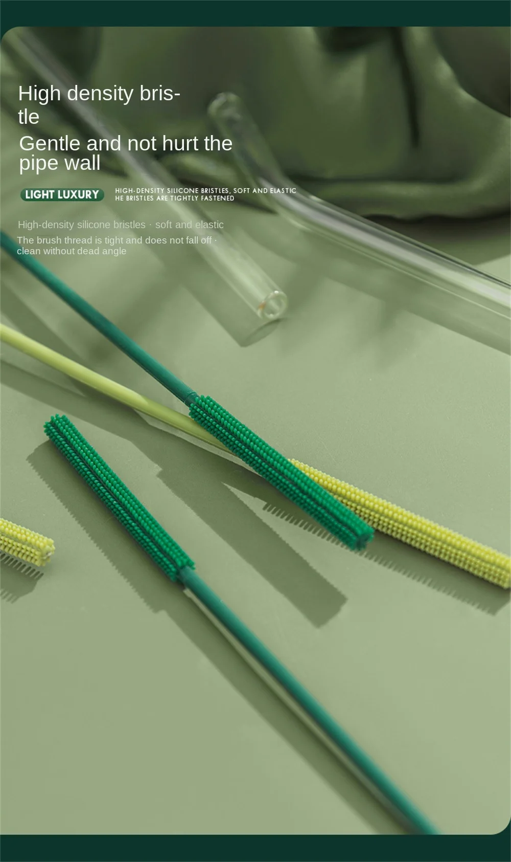 2. Силиконовая щетина высокой плотности, мягкая и эластичная, щетина плотно закреплена и не отваливается, чистая без мертвых углов.