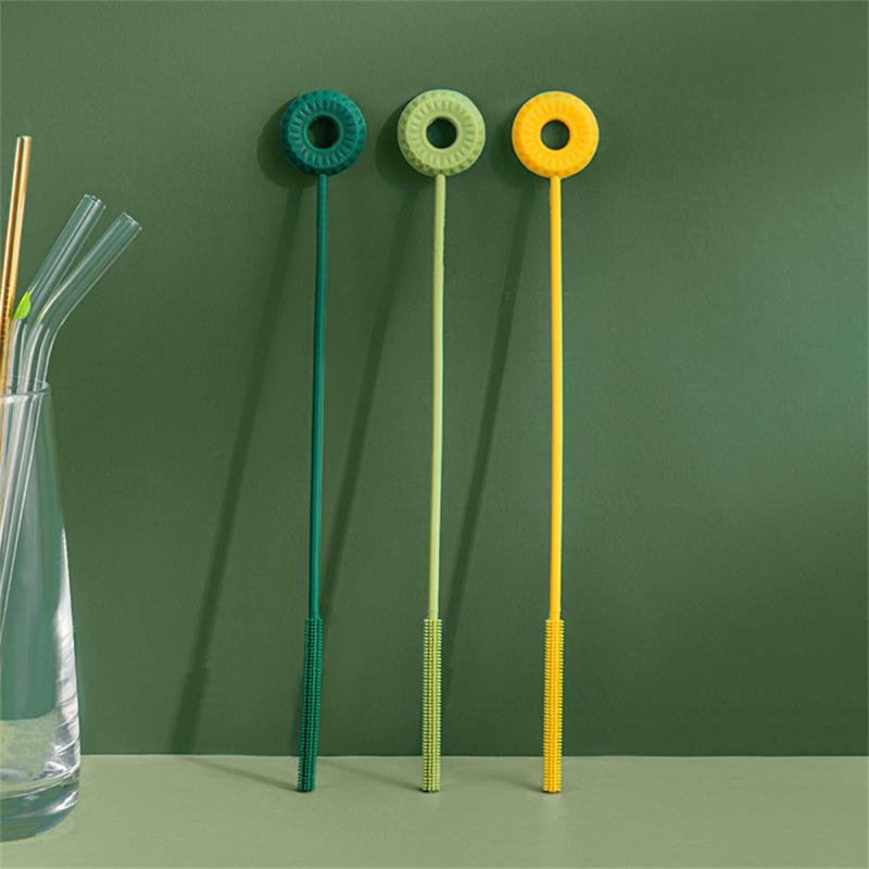 Длинная соломенная щетка Силиконовая щетка для очистки труб для мытья стекла Силиконовый Металлический горшок с носиком Мини-щетки для бутылок Кухонные гаджеты
