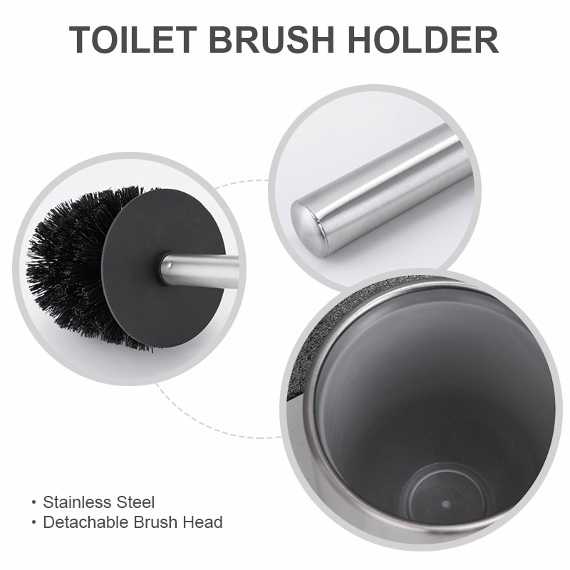 Щетка для унитаза из нержавеющей стали для долговечности и простоты использования. Пластиковая подкладка вокруг канистры защищает от ржавчины, обеспечивает стабильность и простоту использования.