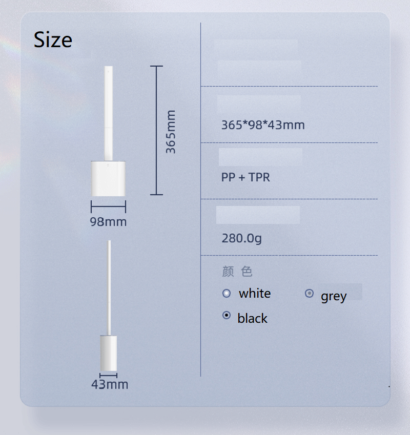 Плоская и заостренная Насадка-щетка предназначена для лучшей очистки каждого угла туалета, сгибая головку щетки под разными углами.