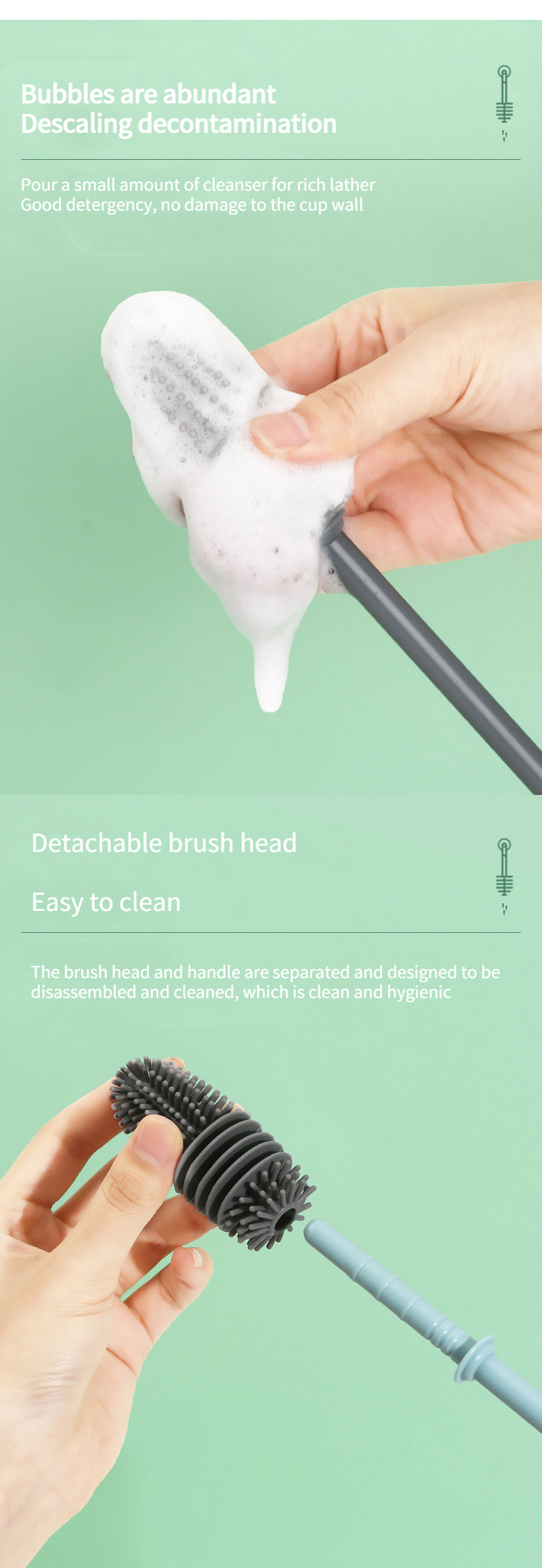 Описание: Щетка для чистки силиконовой чашки Xiaomi щетка для очистки стекла Щетка для детской бутылки кухонные Чистящие Инструменты кухонные аксессуары