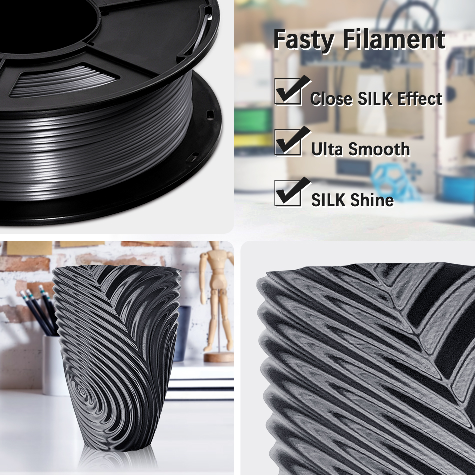 Шелковая нить для 3D-принтера, 1,75 мм, 250 г, блестящая, металлическая, 0,25 кг, черно-красная и т. д., 19 цветов