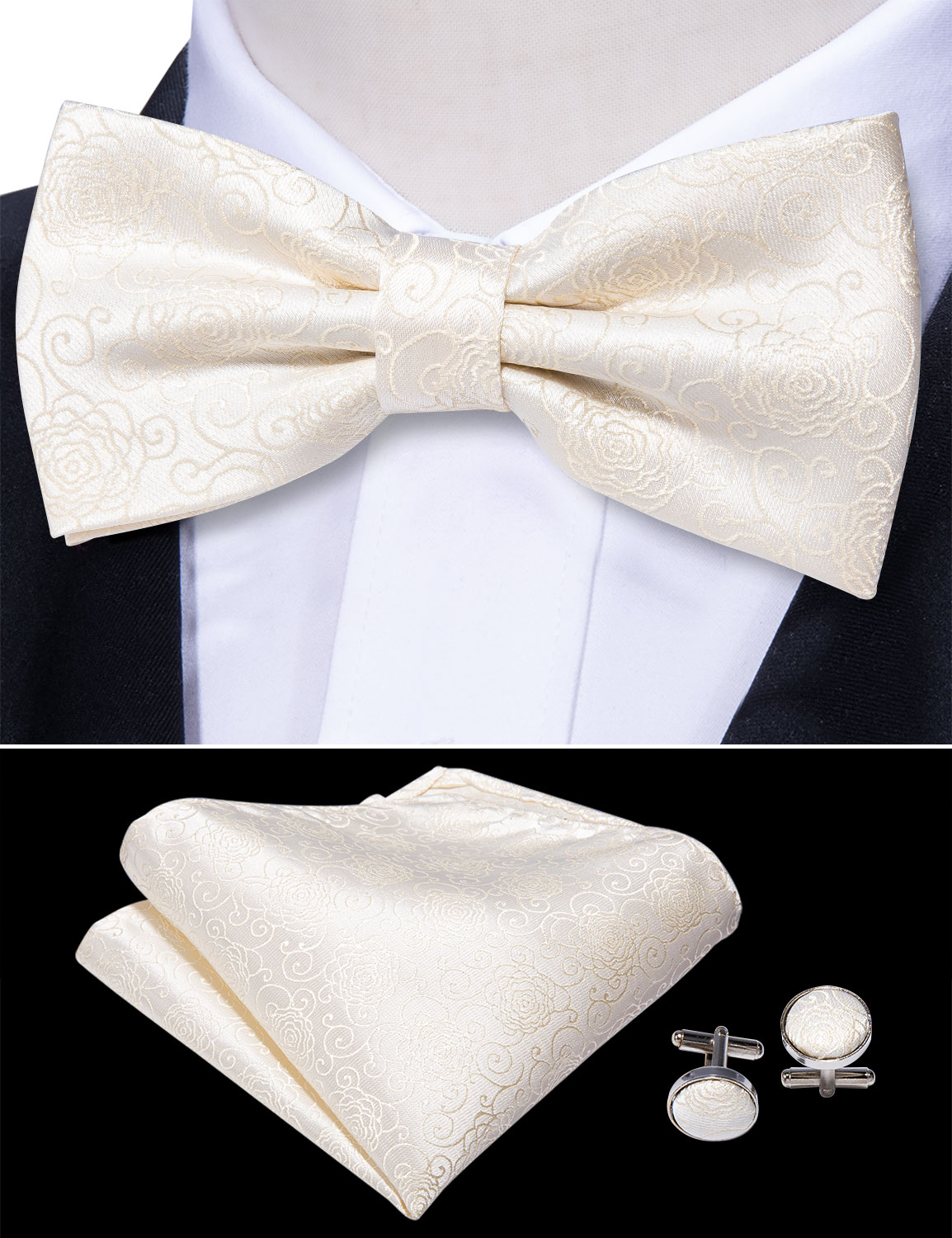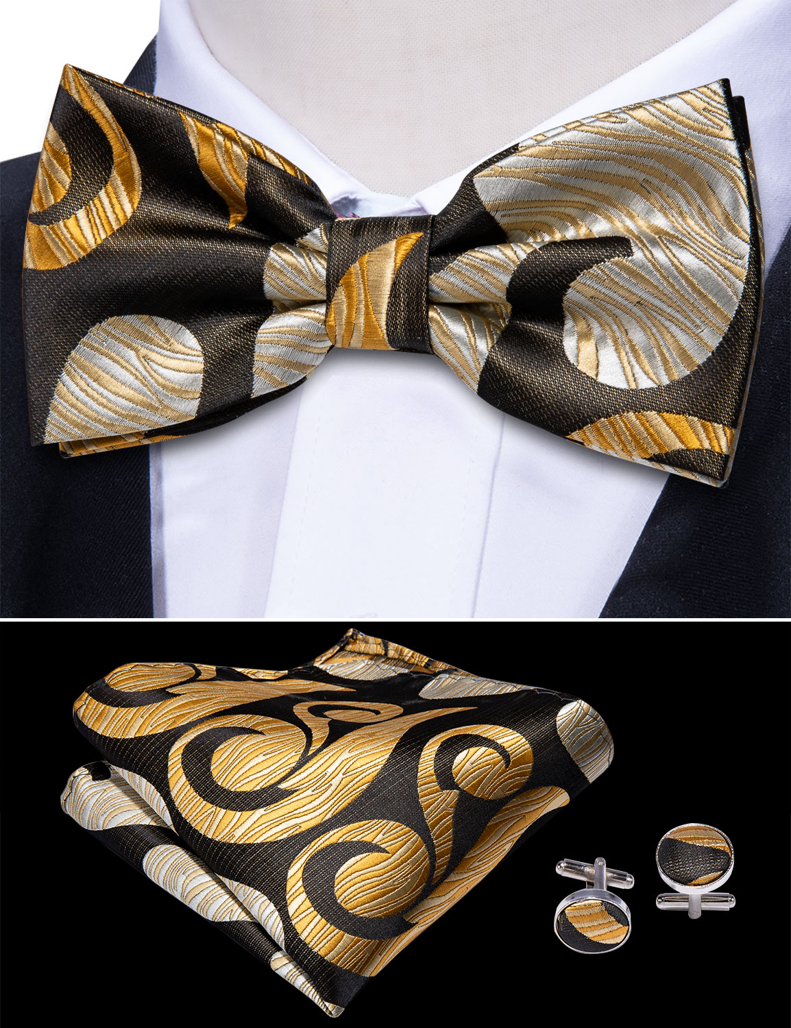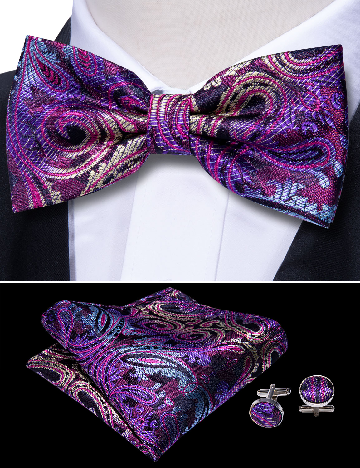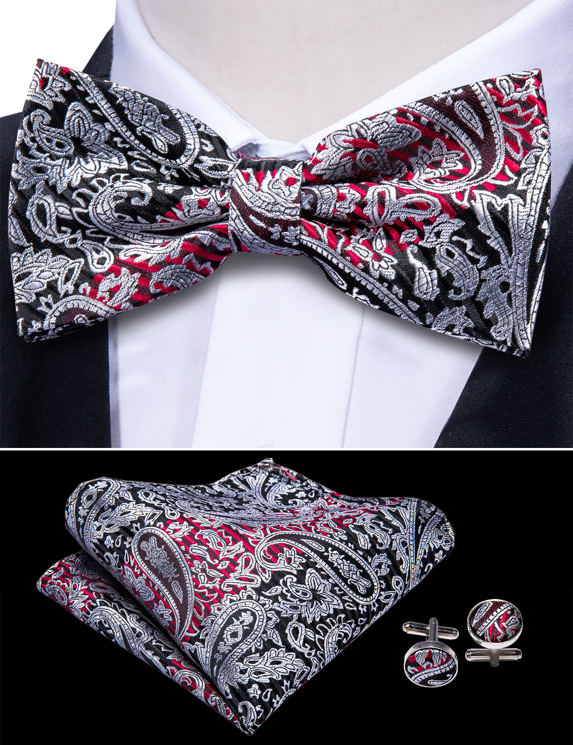Шелковый мужской костюм, черный галстук-бабочка с пейсли, Шелковый Цветочный галстук-бабочка, набор квадратных запонок, мужской костюм для смокинга Barry.Wang