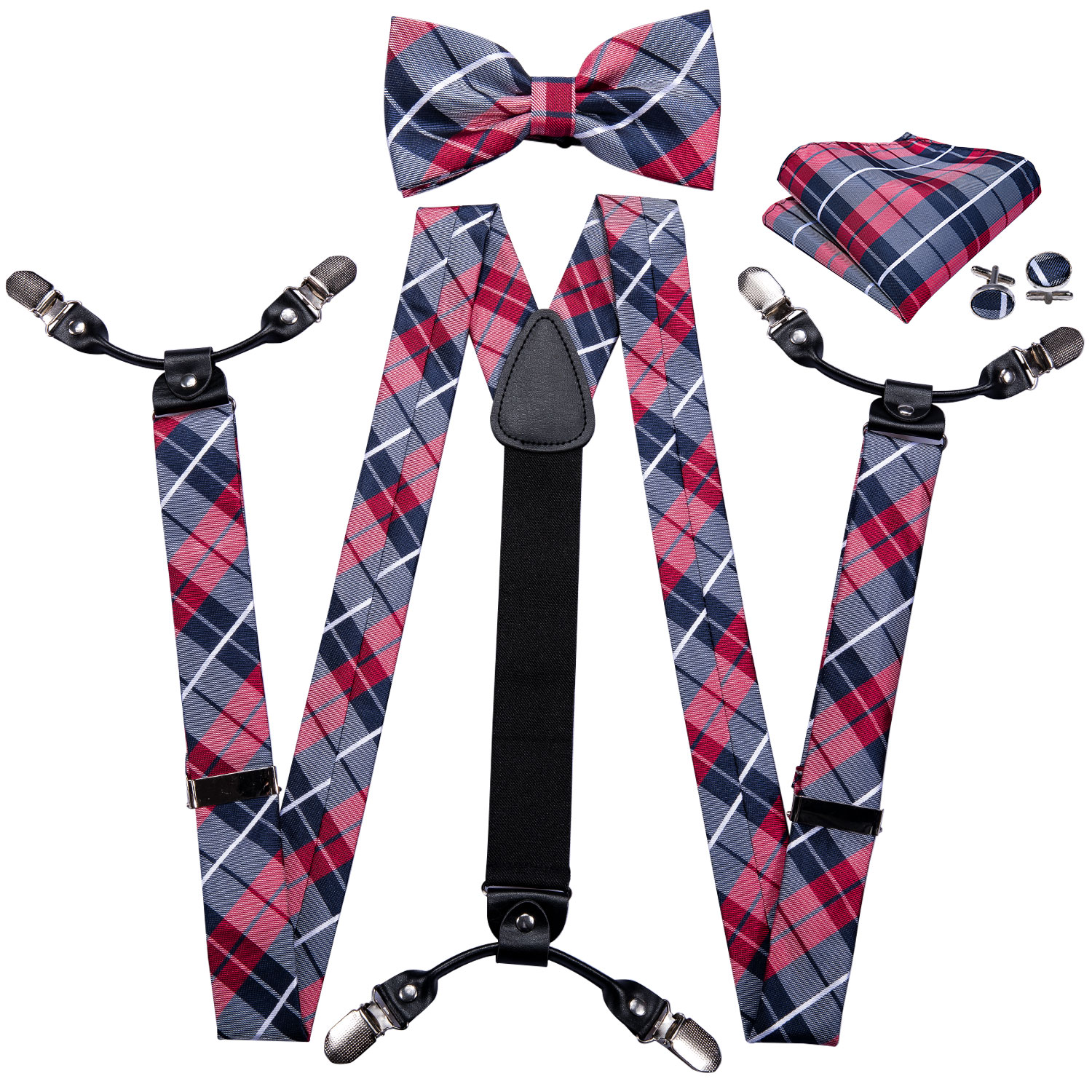Barry.Wang Мужские/женские шелковые подтяжки с клипсами, эластичные Y-образные регулируемые красные черные подтяжки, комплект запонок-бабочек BD-200119,99 долларов США/Шт/Лот 1