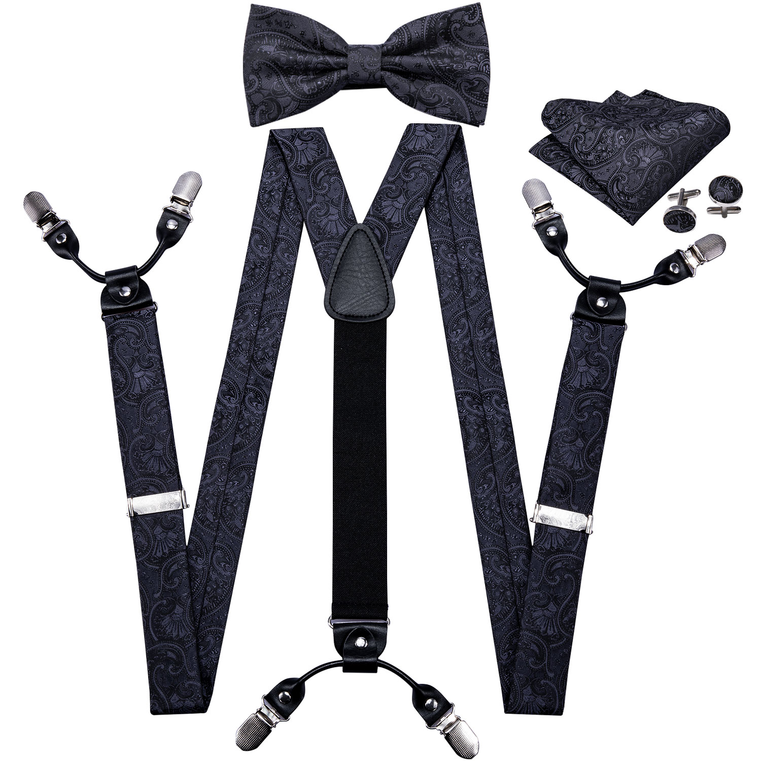 Черная подтяжка для мужчин шелковые эластичные брюки подтяжки ремешок Пейсли Бабочка Набор Запонок Регулируемая подтяжка для подарка BD-200519,99 долларов США/Шт/Лот 1