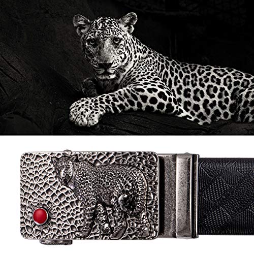 Животный пояс для мужчин Ремень из натуральной воловьей кожи Автоматическая скользящая пряжка с храповым механизмом Прочный поясной ремень Пряжка из леопардового сплава для брюк19,99 долларов США/Шт/Лот 1