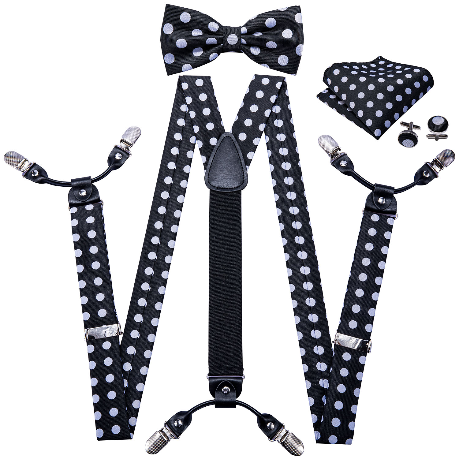 6 зажимов Мужской Шелковый ремешок для подтяжек черный белый в горошек эластичные брюки подтяжки ремешок винтажная Регулируемая подтяжка для костюма рубашки BD-200319,99 долларов США/Шт/Лот 1