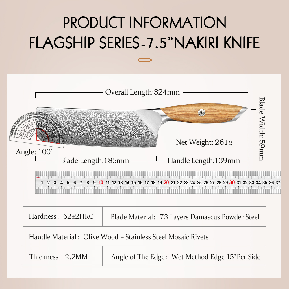 Шэньчжэнь флагманская серия 7 дюймов раньше 73 слоя Дамасская Порошковая сталь оливковая деревянная ручка кухонные столовые приборы