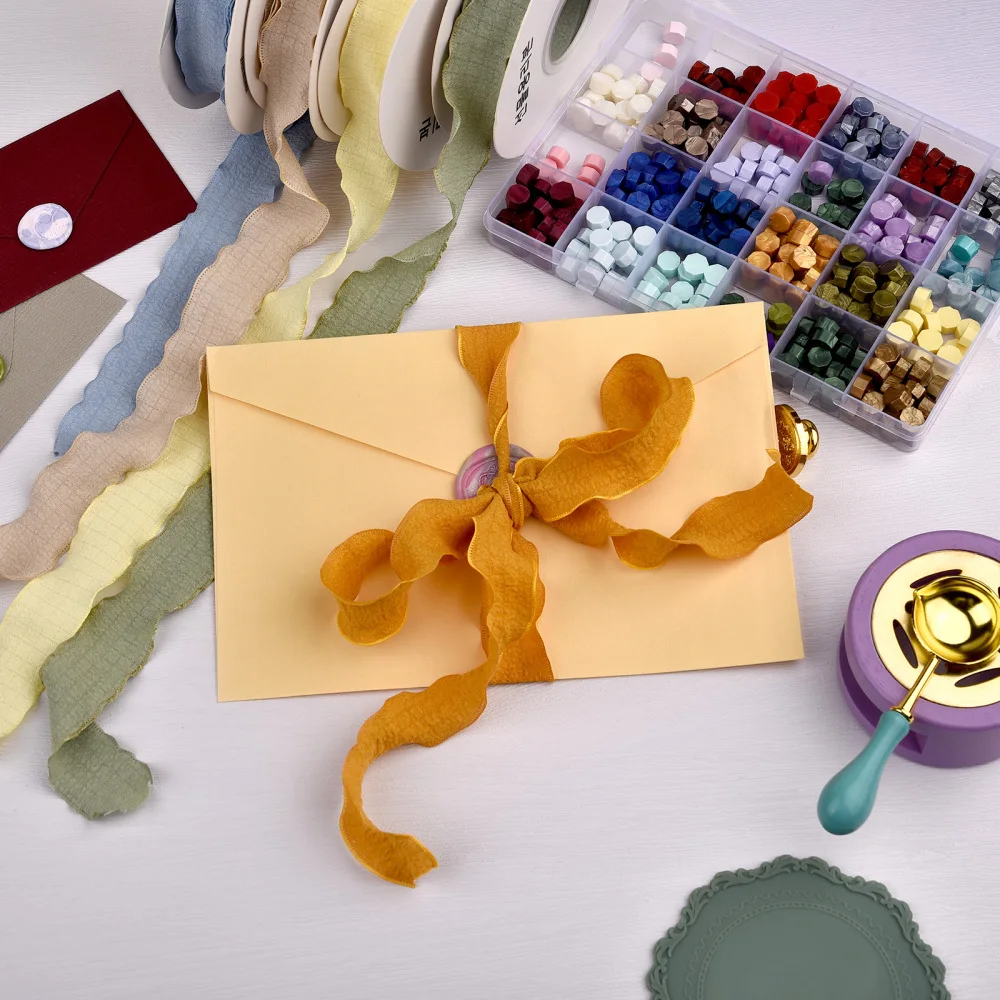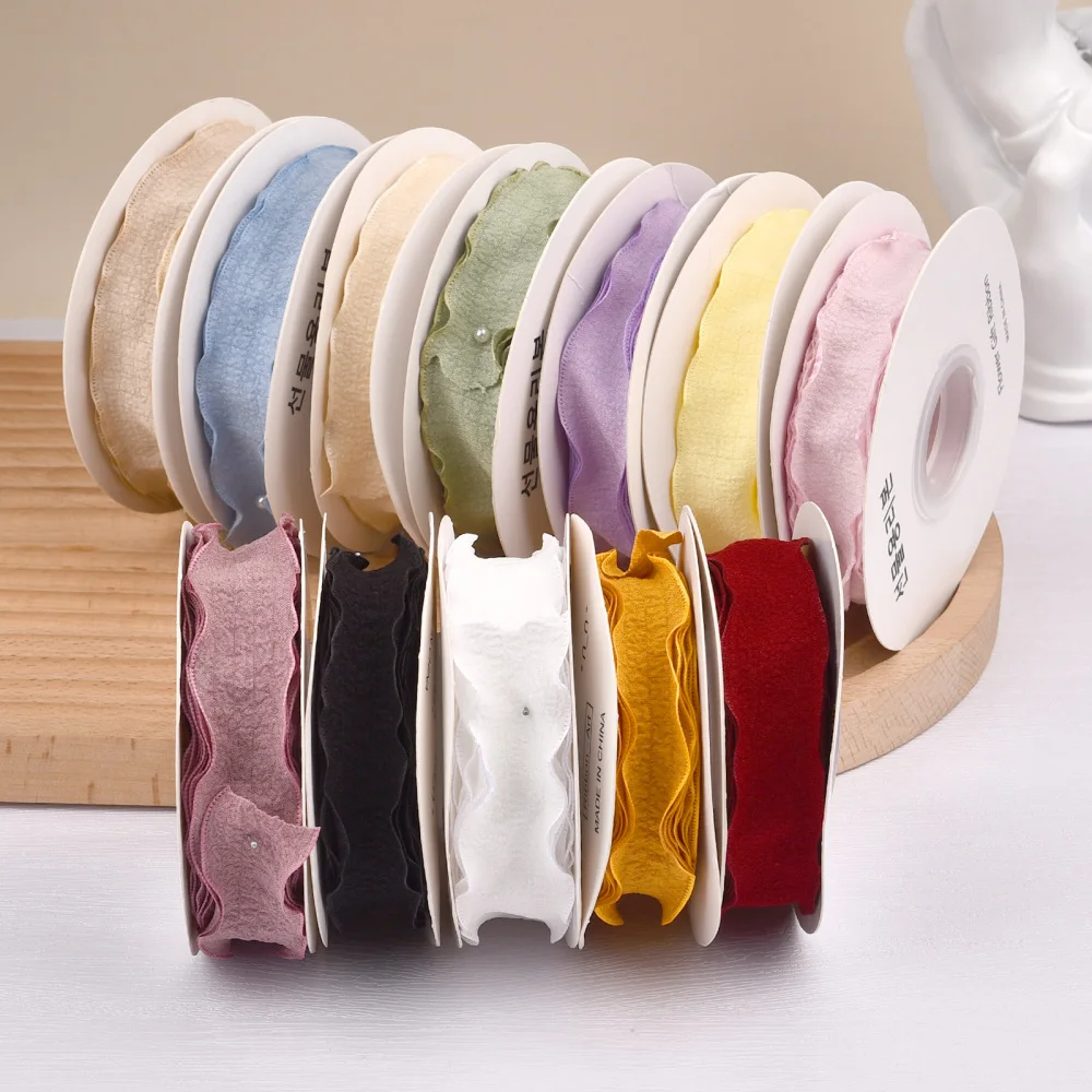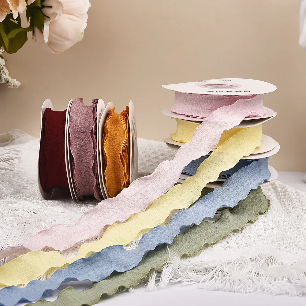 Шифоновая шелковая лента ручной работы с потертостями и морщинами для свадебных приглашений, украшение для упаковки, прозрачная бахрома, крафтовый букет невесты