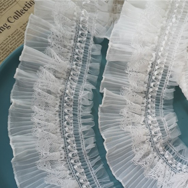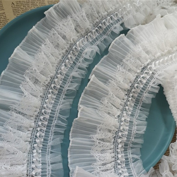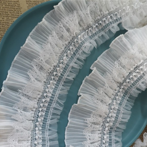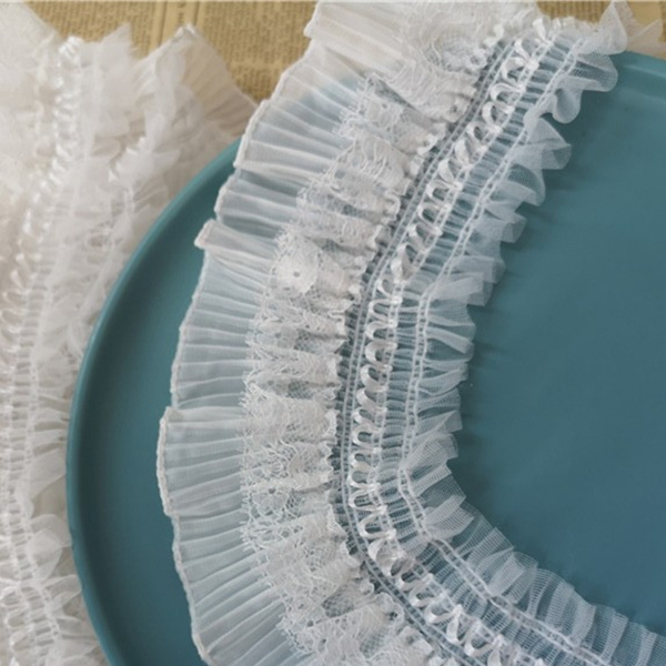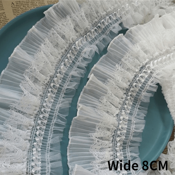 8 см Ширина Белый Черный 3D шифон стрейч кружевной воротник ленты оборки рукоделие Эластичная отделка рюшами для шитья одежды DIY ремесла