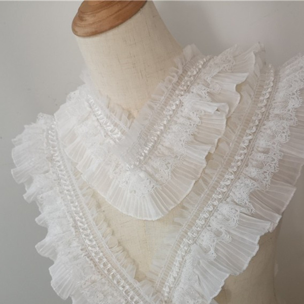 Шифоновый эластичный кружевной воротник с объемными оборками, ширина 8 см