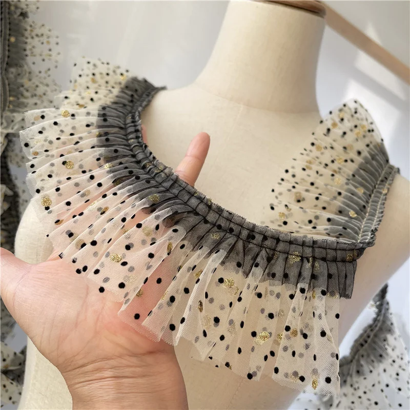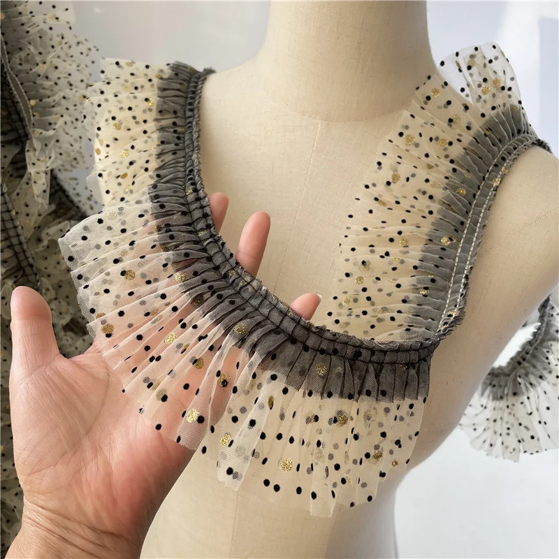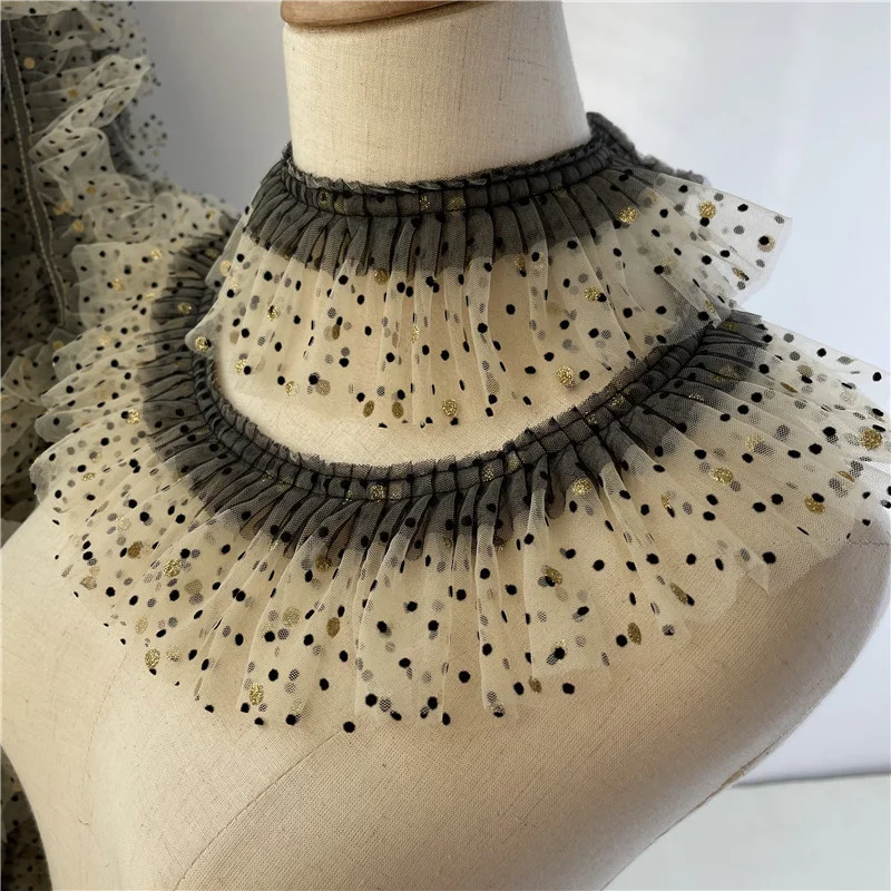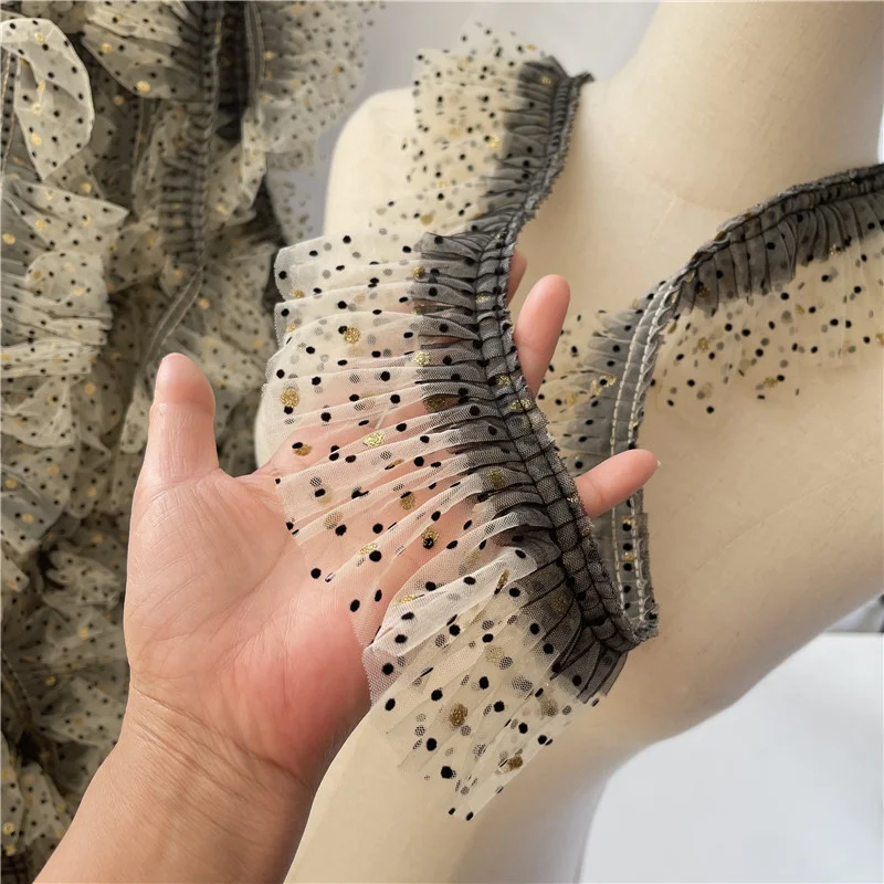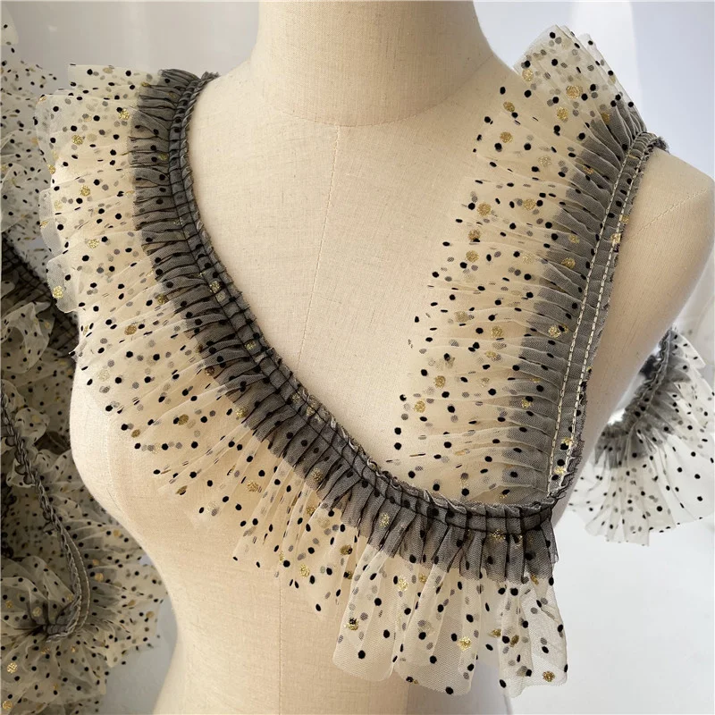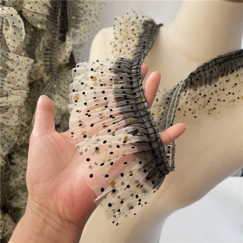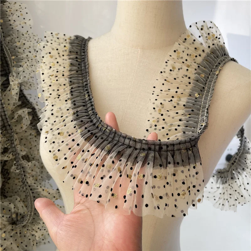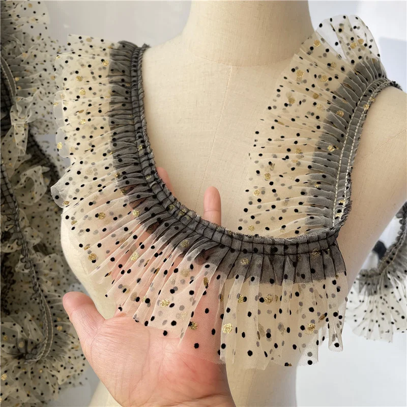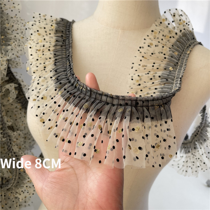8 см Широкий абрикосовый черный двухслойный сетчатый золотой узор в горошек вышитая лента кружевная ткань с оборками отделка платье одежда швейный Декор