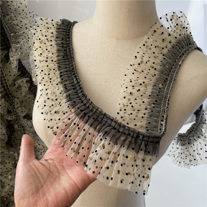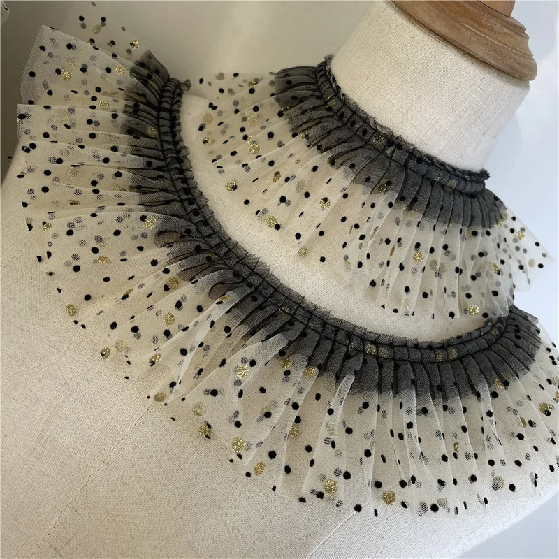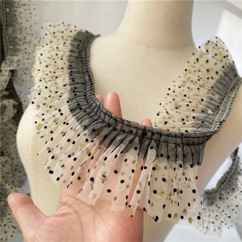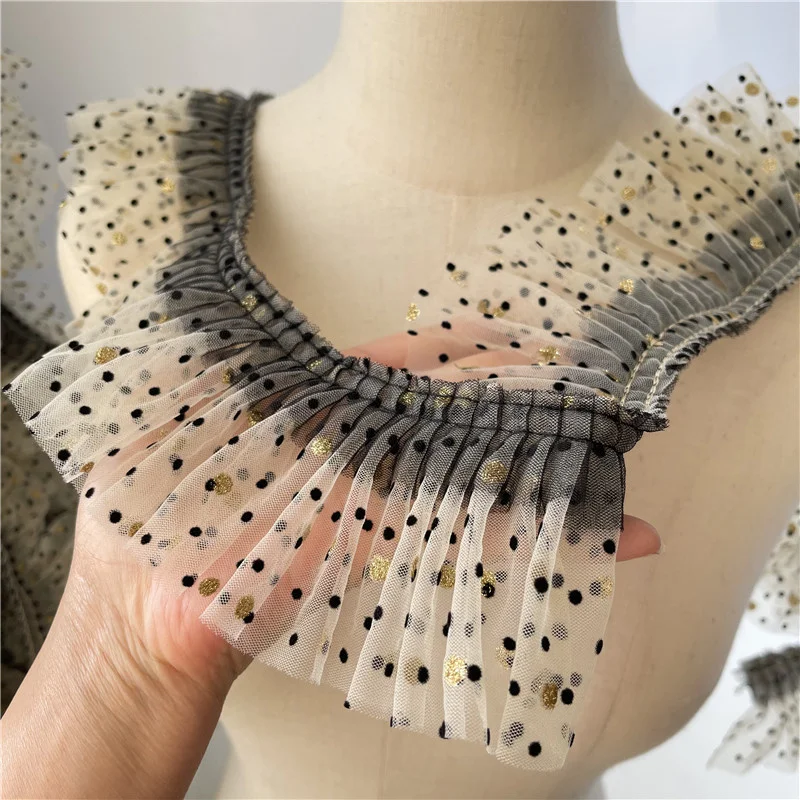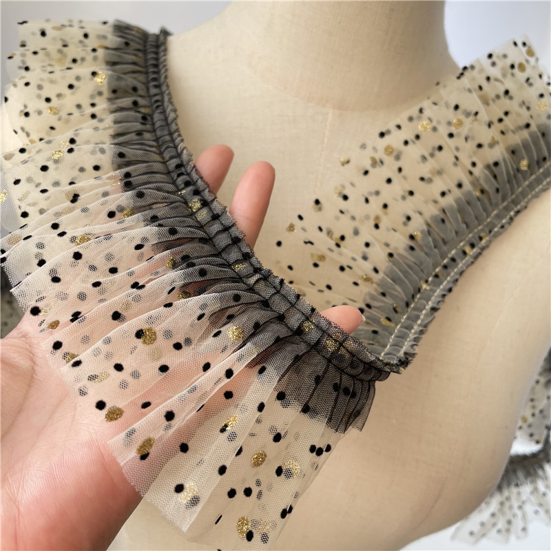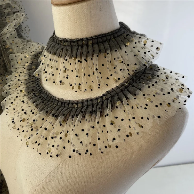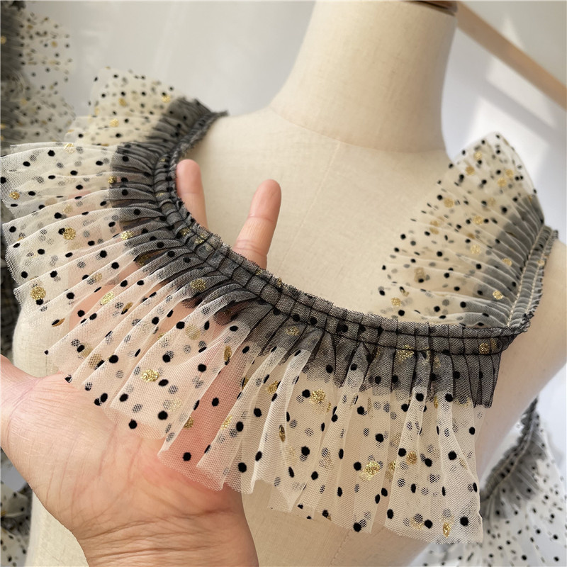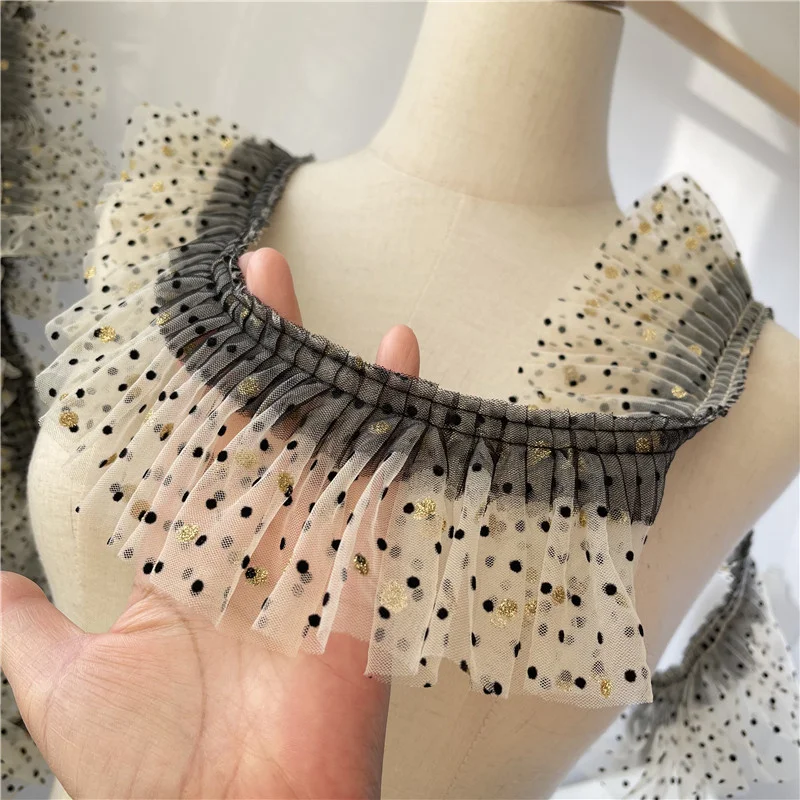 8 см Широкий абрикосовый черный двухслойный сетчатый золотой узор в горошек вышитая лента кружевная ткань с оборками отделка платье одежда швейный Декор