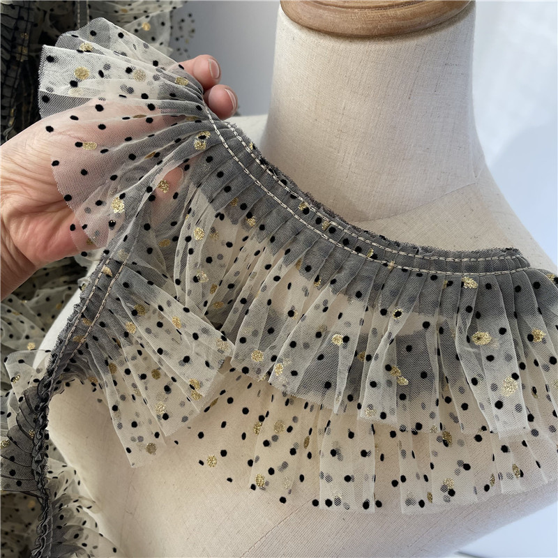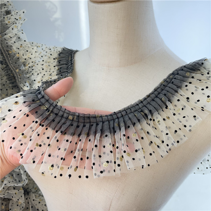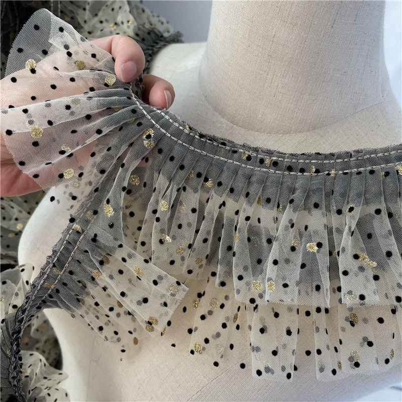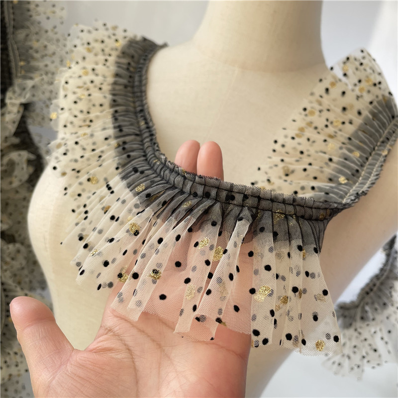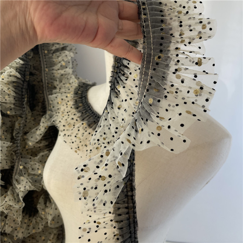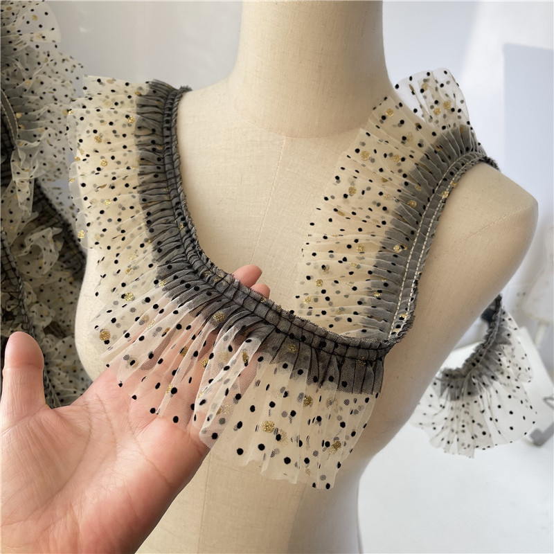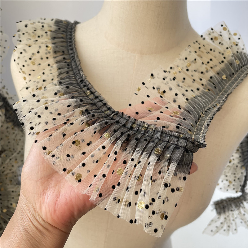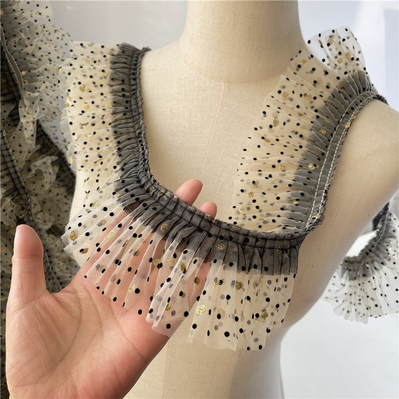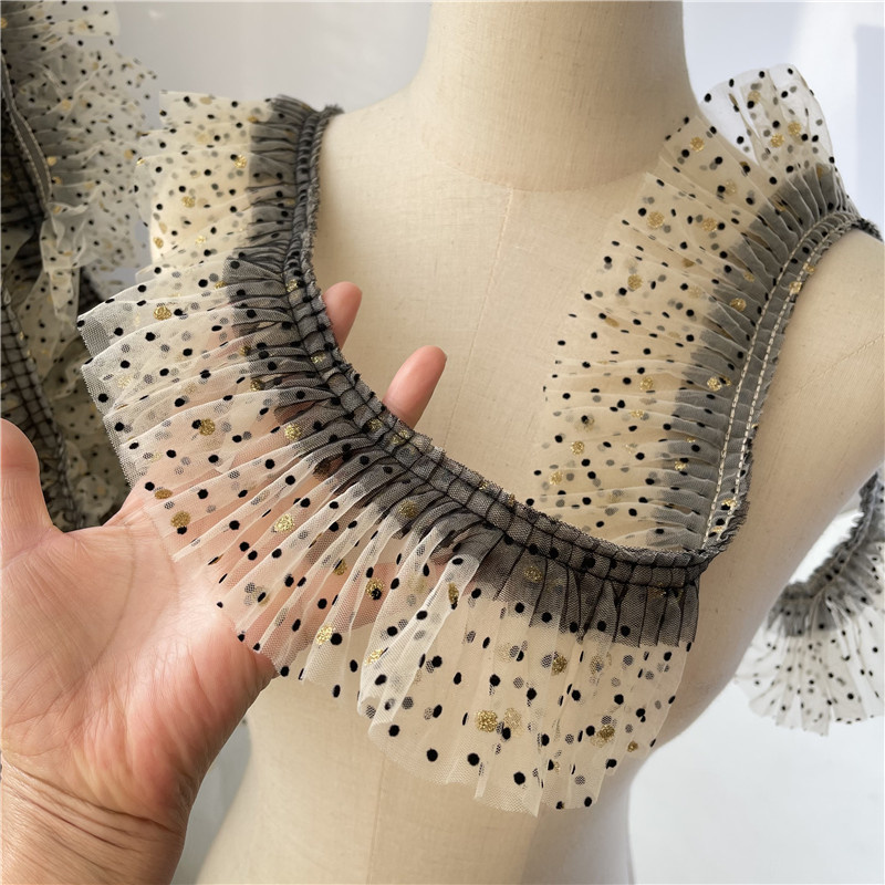 8 см Широкий абрикосовый черный двухслойный сетчатый золотой узор в горошек вышитая лента кружевная ткань с оборками отделка платье одежда швейный Декор