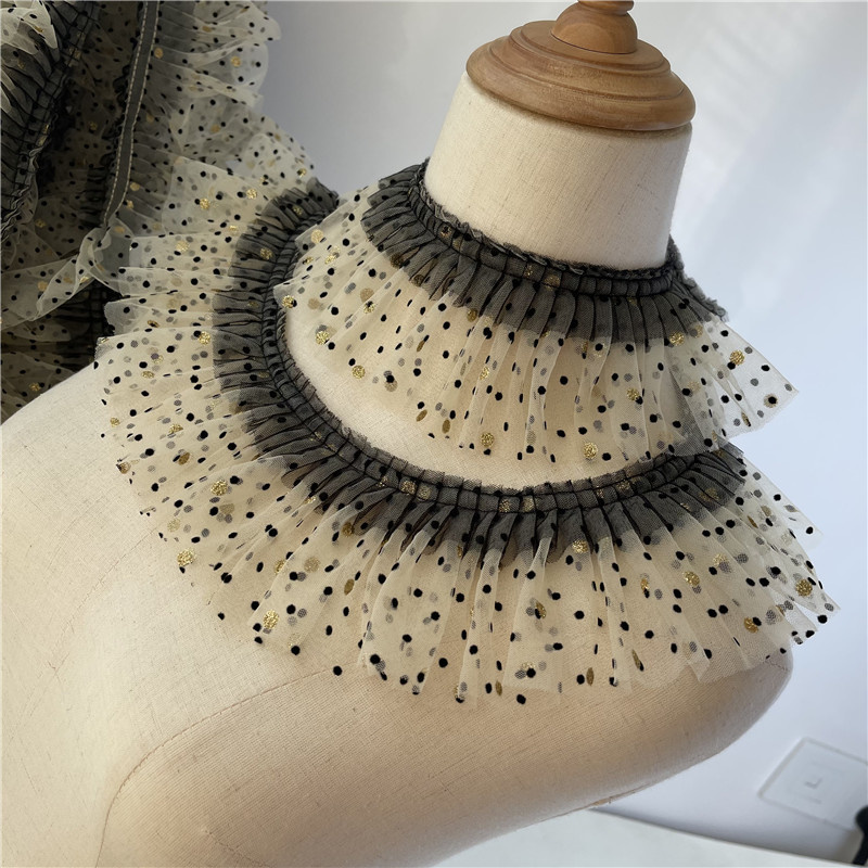 Ширина 8 см, абрикосовая, черная двухслойная сетка, золотая, в горошек, вышитая лента, кружевная ткань, оборки, отделка платья, женская одежда
