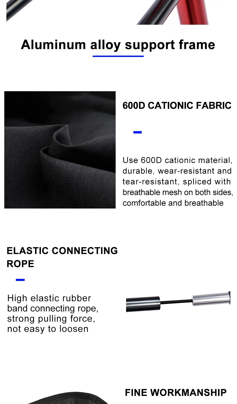3. Материал: устойчивая к разрыву катионная оксфордская ткань 600D, алюминиевый сплав
