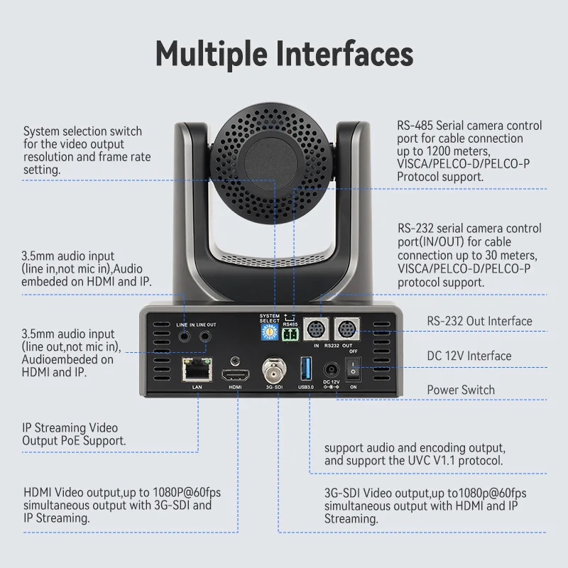 Используйте Высококачественный 1/2,8-дюймовый FHD CMOS-датчик с 2,07 миллионами пикселей. Поддержка вывода изображения до 1080P60 кадр в секунду и нескольких более низких разрешений, таких как 720p.
