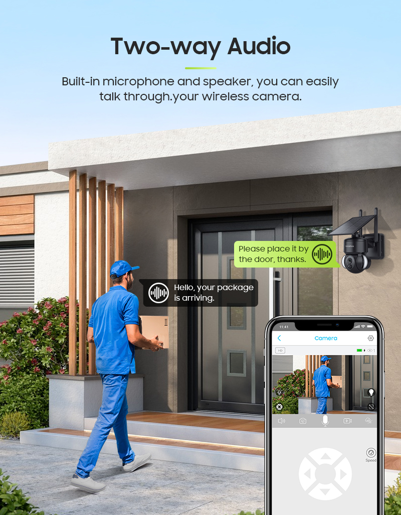 Встроенный микрофон и динамик, вы можете легко разговаривать через вашу беспроводную камеру.