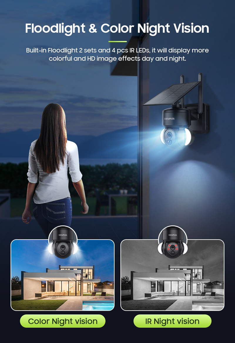 Подключите камеру к солнечной панели, и она будет получать бесперебойное питание весь день и всю ночь.