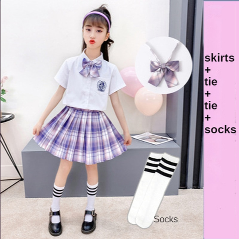 Школьная униформа для девочек-подростков, Детские плиссированные юбки, японская школьная форма, клетчатая юбка А-силуэта с высокой талией, униформа JK, Бесплатный галстук и носки