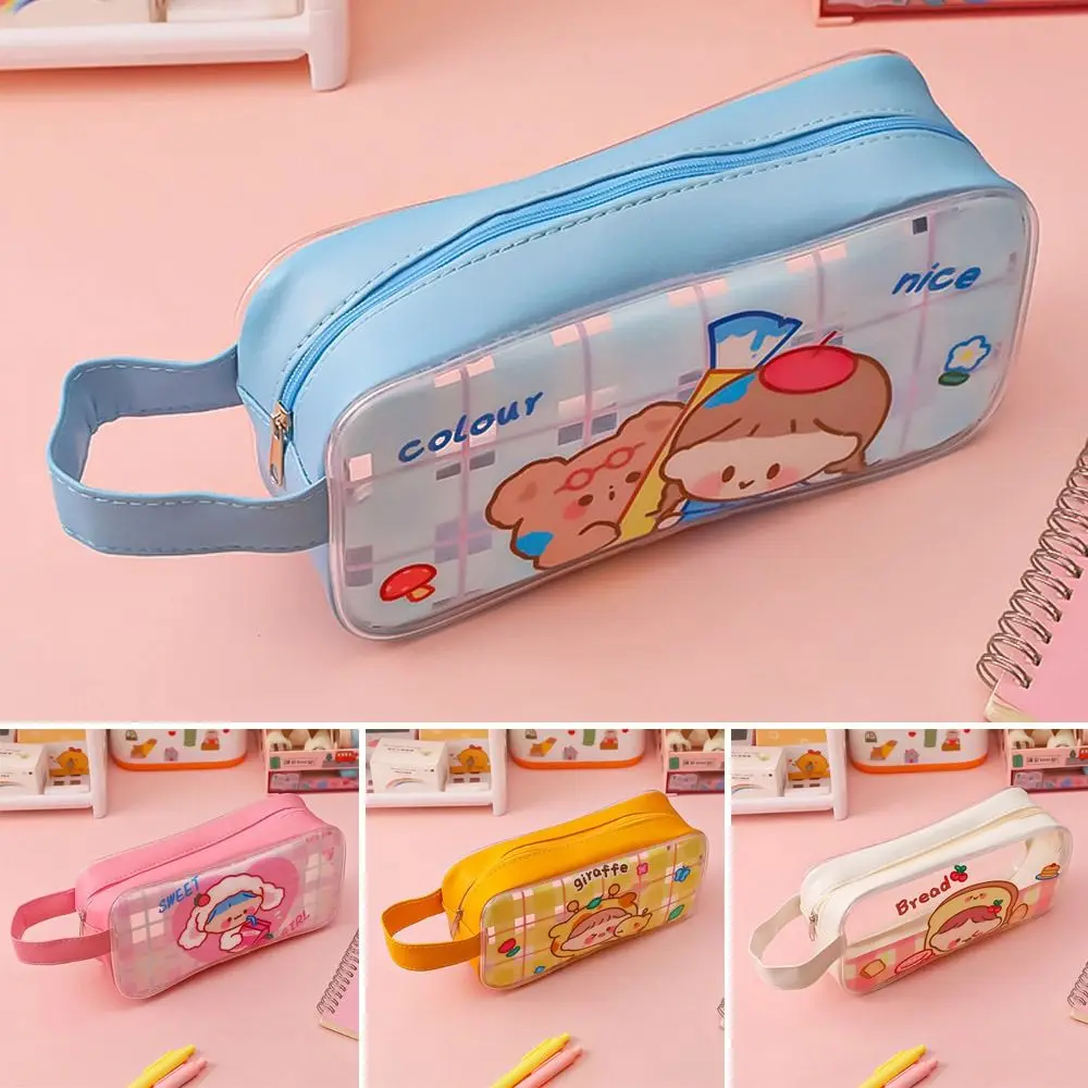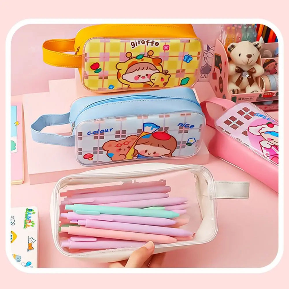 Школьные принадлежности, студенческие принадлежности, симпатичная вместительная мультяшная сумка для карандашей из ПВХ, прозрачная сумка для канцелярских принадлежностей