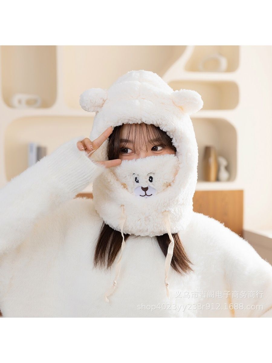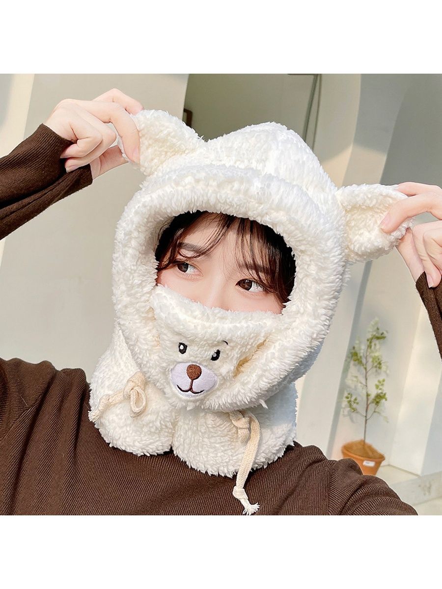Шлем балаклава с ушками мишки женская плюшевая для девочки