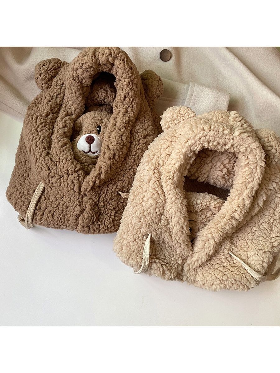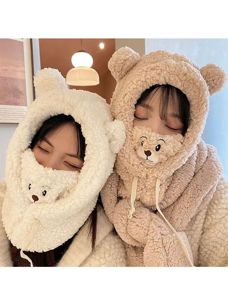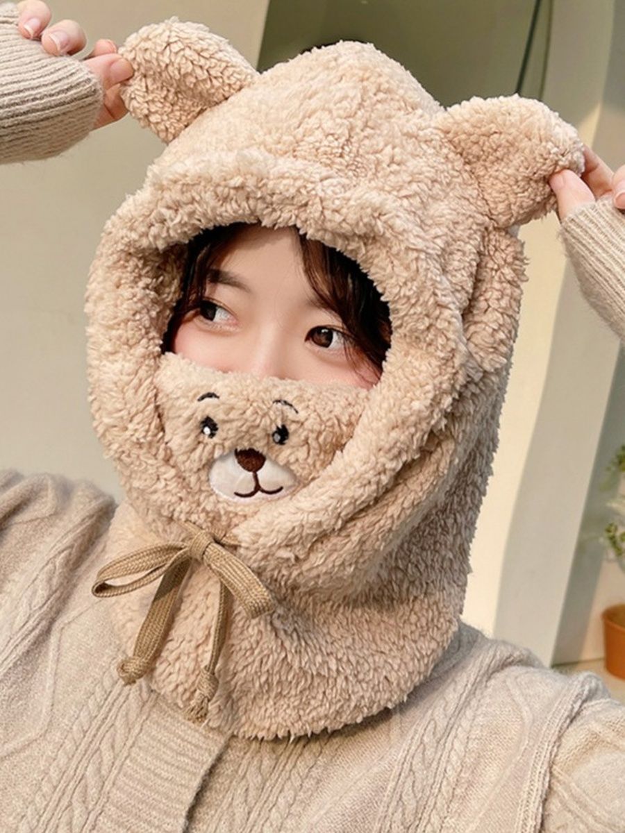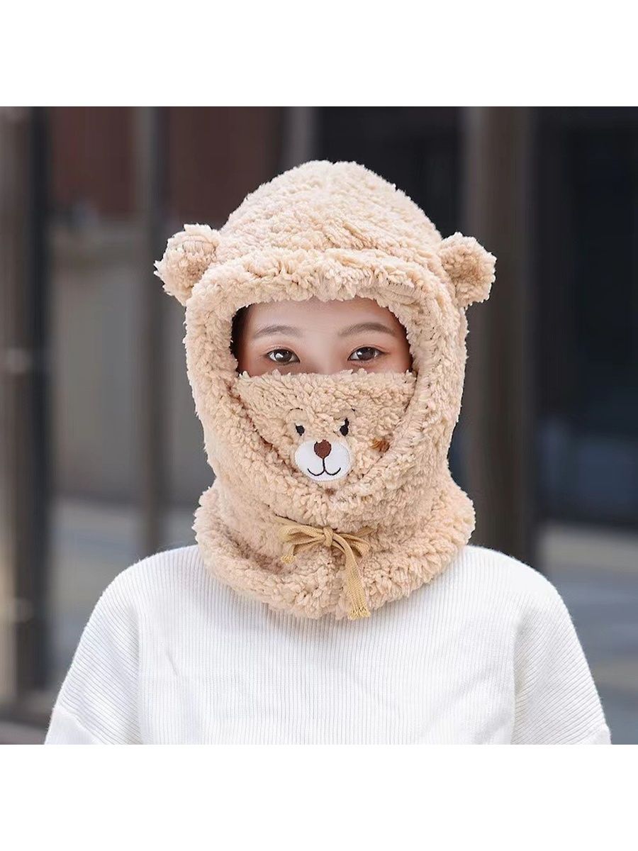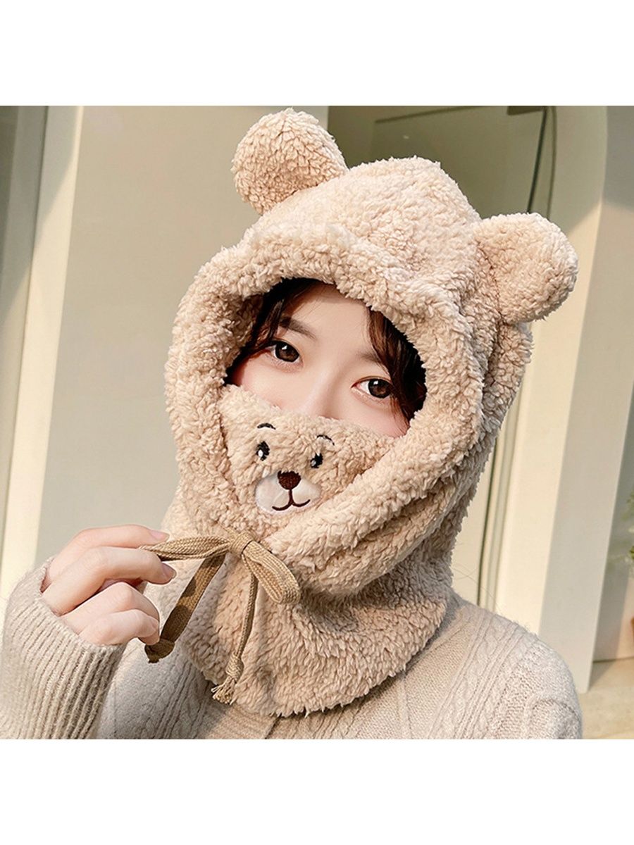 Шлем балаклава с ушками мишки женская плюшевая для девочки