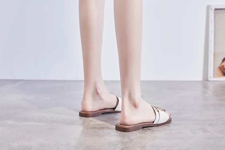 Шлепанцы ZHR женские, сандалии из натуральной кожи, квадратный носок, дизайнерские, роскошные брендовые, повседневная обувь на плоской подошве, лето