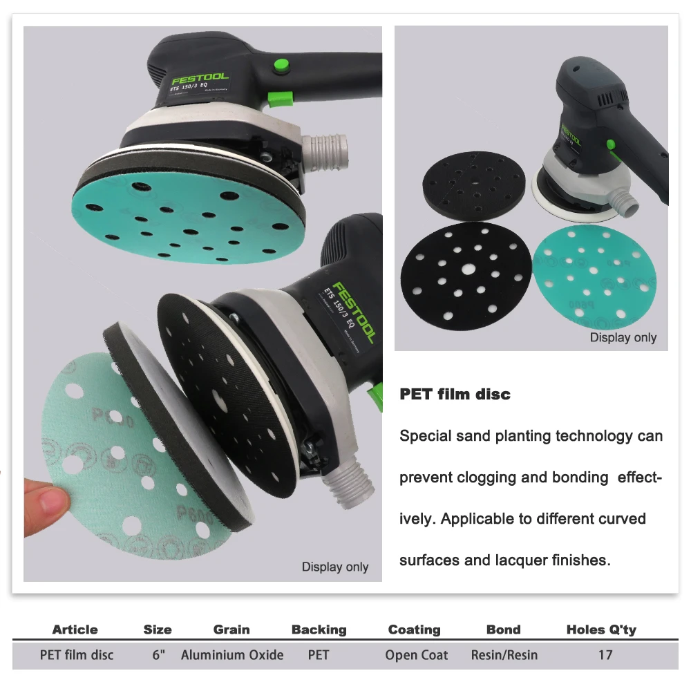 Материал: материал ПЭТ Диаметр диска: 6 дюймов (150 мм) 17 отверстий Тип рукоятки: крюк и петля Количество отверстий: 17 отверстий Номер зернистости: 60 #, 80 #, 120 #, 150 #, 180 #, 240 #, 320 #, 400 #, 600 #, 800 #, 1000 #, 1200 #, 1500 #, 2000 # Посылка включает в себя: 10 шт x 6 дюймов 17-hole полиэфирная пленка шлифовальные диски